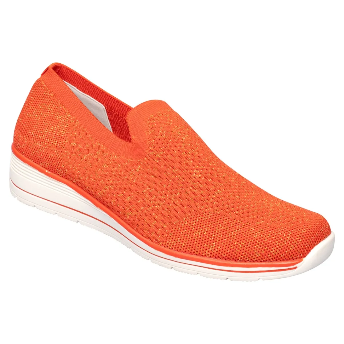 Frischer Wind für Ihre Füße: Mit diesem federleichten Slipper schweben Sie förmlich durch den Tag. Das flexible Material passt sich Ihrem Fuß optimal an – ideal auch bei Hallux valgus. Mit weicher, herausnehmbarer Einlegesohle, rutschhemmender Laufsohle und modischem Keilabsatz.