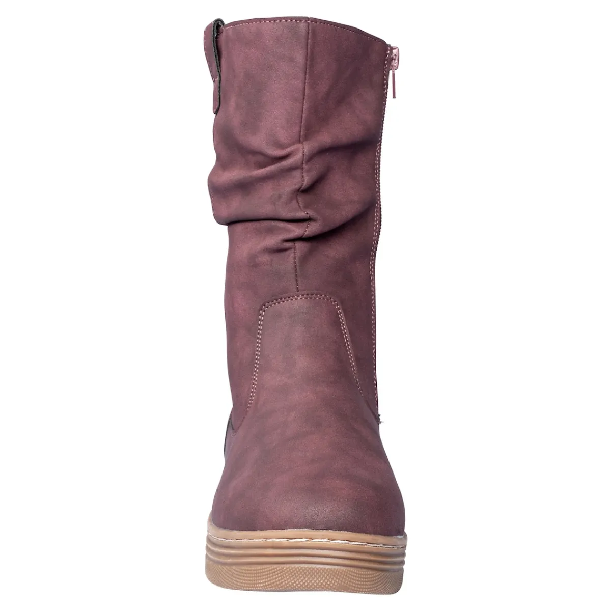 Der moderne Übergangsstiefel in Veloursleder-Optik punktet mit einem seitlichen Reißverschluss für einen leichten Ein- und Ausstieg. Seine attraktiven Extras werden Sie begeistern: die obere Raffung, die rutschhemmende Profil-Laufsohle mit Ziernaht sowie das warme Futter.