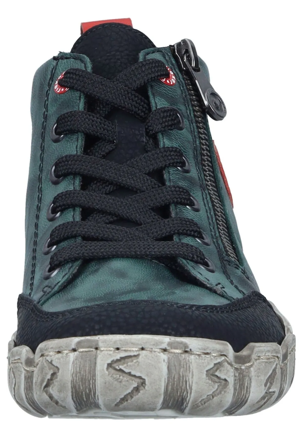 Bei diesem Produkt handelt es sich um einen Schuh aus der Kategorie Schnürstiefeletten für Damen. Als Obermaterial wurde Synthetik verwendet und im inneren Bereich des Schuhs wurde Textilfutter und Lederdecksohle verarbeitet. Die Schuhweite dieses Artikels ist Weite F 1/2 und somit schmal. Als Verschlussart wurde Reißverschluss gewählt und die PU-Sohle rundet das Produkt ab. Der Artikel fällt normal aus, bitte die gewohnte Größe bestellen. – Schuhweite: Weite F 1/2 –