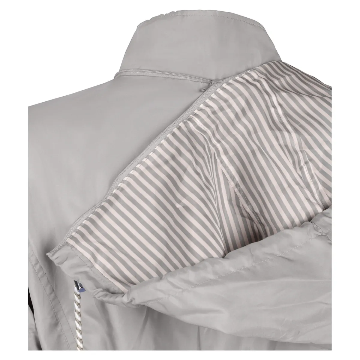 Die Übergangsjacke „Linda“ ist Ihre perfekte Begleitung durch die wechselhaften Frühlingstage. Mit ihrem Stehkragen, der Taillenschnürung, Kapuze sowie dem praktischen Reißverschluss und den zwei seitlichen Eingriffstaschen mit Zierlasche und Öse vereint sie Funktionalität und Stil. Gekonnt hält sie Wind und Wetter ab, während Sie modisch durch die Übergangszeit schreiten.