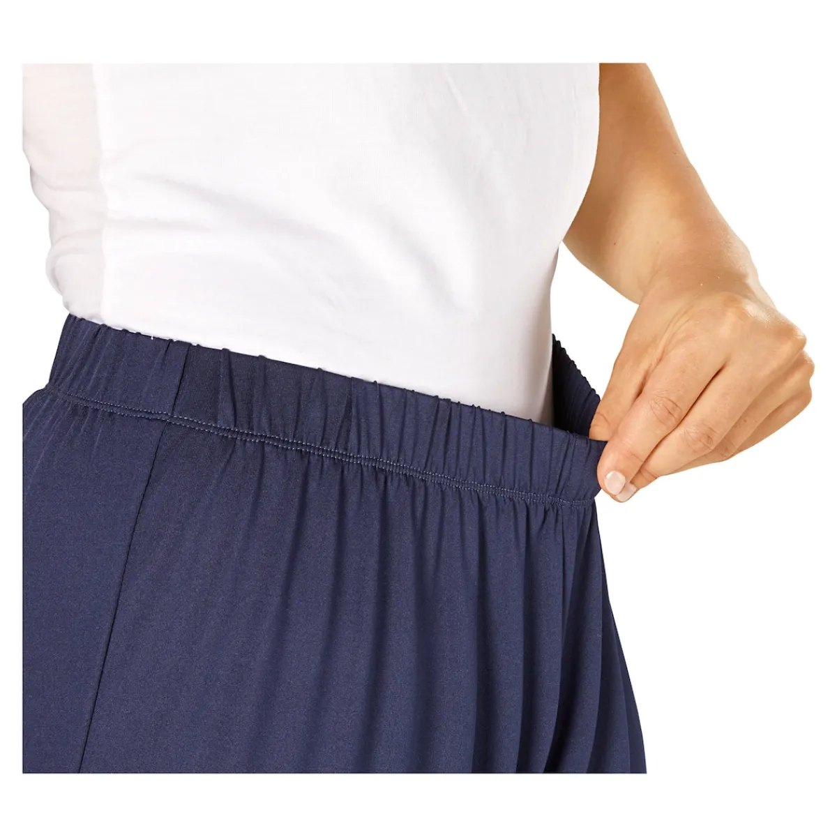 Nichts kneift, nichts engt ein. Weich fließendes Material für eine schlanke Silhouette.