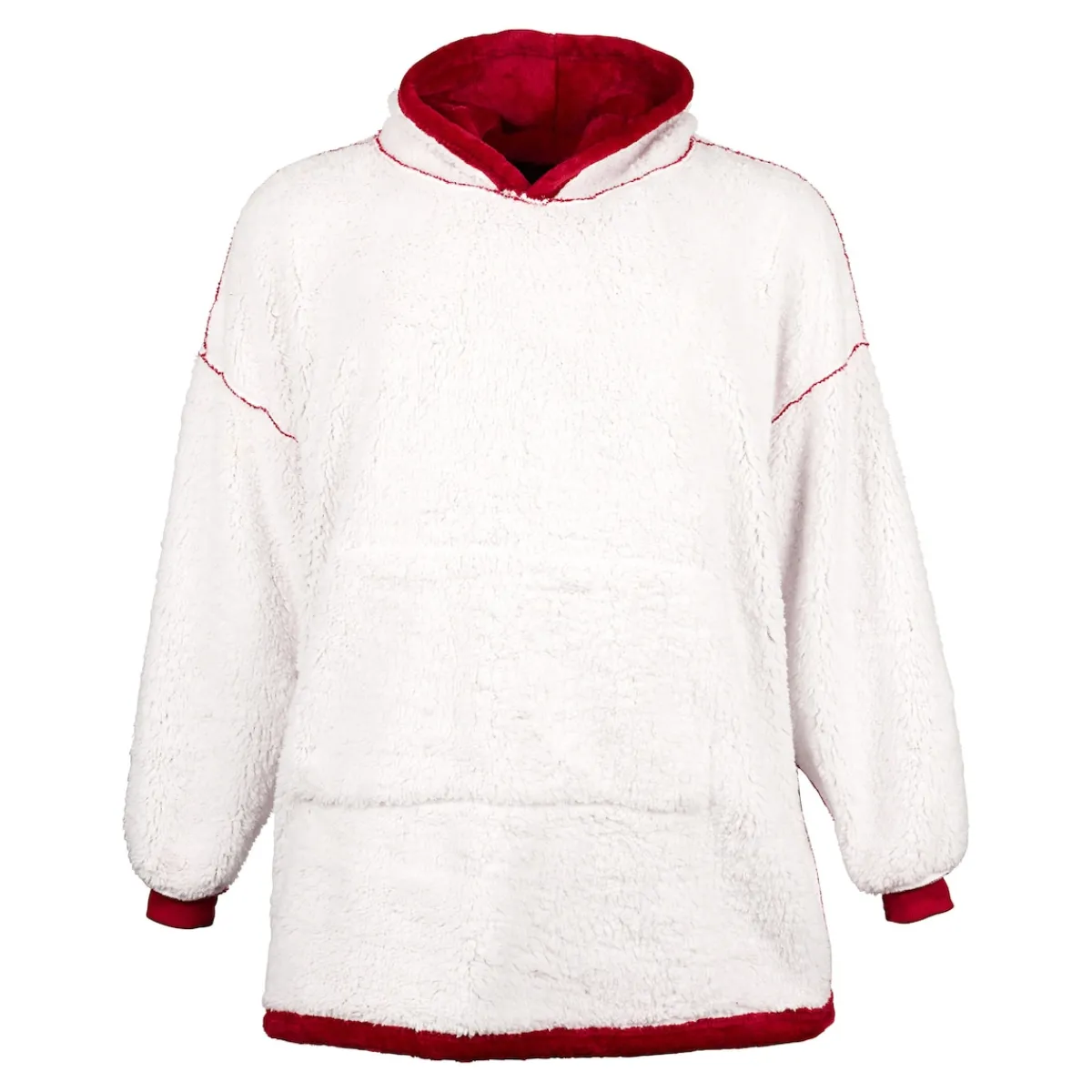 In der Winterzeit macht man es sich daheim gerne gemütlich. Mit diesem Kuschelpulli lassen Sie die Temperaturen draußen kalt. Der Clou: Sie können ihn nach Lust und Laune wenden und die passende Farbe zu Ihrer Stimmung wählen. Mit großer Kapuze, großzügiger Schnittform für rundum bequemen Tragekomfort sowie praktischer Bauchtasche für wohlig warme Hände. Einheitsgröße passend bis Gr. XL.