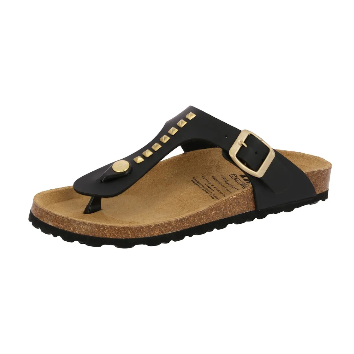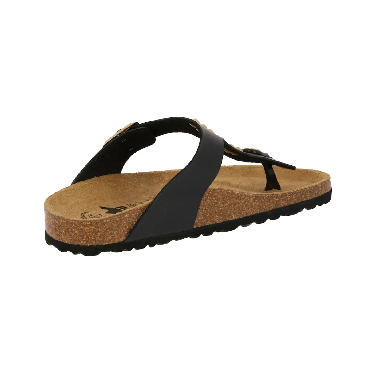 Erleben Sie den Sommer mit unserem exquisiten Zehenstegpantolette, die höchsten Komfort bietet. Das Fußbett aus Kork und Kautschuk sorgt für angenehme Unterstützung, während die dämpfungsaktive EVA-Laufsohle jeden Schritt abfedert. Die luxuriöse Lederdecksohle schmiegt sich sanft an Ihre Füße. Mit der verstellbaren Schnalle können Sie die Passform an Ihre Bedürfnisse anpassen. Hergestellt aus hochwertigem Synthetik-Material, verspricht diese Pantolette Langlebigkeit und Stil.