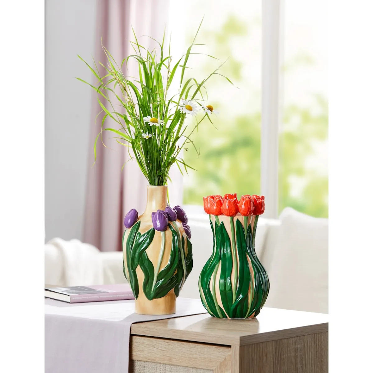 Unverzichtbar auf Ihrem Tisch: Die liebevoll gestalteten 3D-Blumen, die förmlich aus der Vase wachsen, strotzen selbst solo ohne Blumenstrauß nur so vor Frühling!