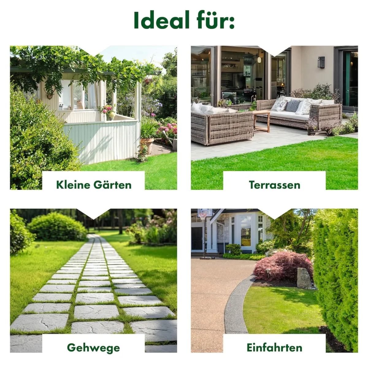 Mit einem Schnittkreisdurchmesser von ca. 19 cm eignet sich der RuWi Akku-Rasentrimmer perfekt für den Feinschliff im Garten. Er ergänzt Ihren Rasenmäher optimal und macht die Gartenpflege effizienter und angenehmer – für alle, die Wert auf präzise Ergebnisse und eine gepflegte Optik legen.