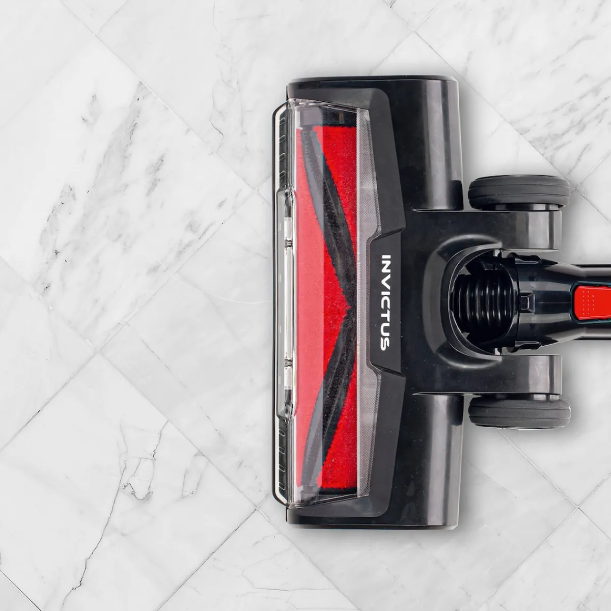 Der INVICTUS X9 ist mehr als nur ein Staubsauger – er ist eine Revolution in der Reinigungstechnologie. Dank seines leistungsstarken BLDC-Motors bietet er außergewöhnliche Saugkraft, während die motorisierte 3-in-1 King Brush selbst hartnäckigen Schmutz auf Teppichen, Fliesen und Holzböden mühelos entfernt. Die extra breite Saugöffnung erfasst sowohl feine als auch große Partikel für eine gründliche Reinigung in einem Durchgang.