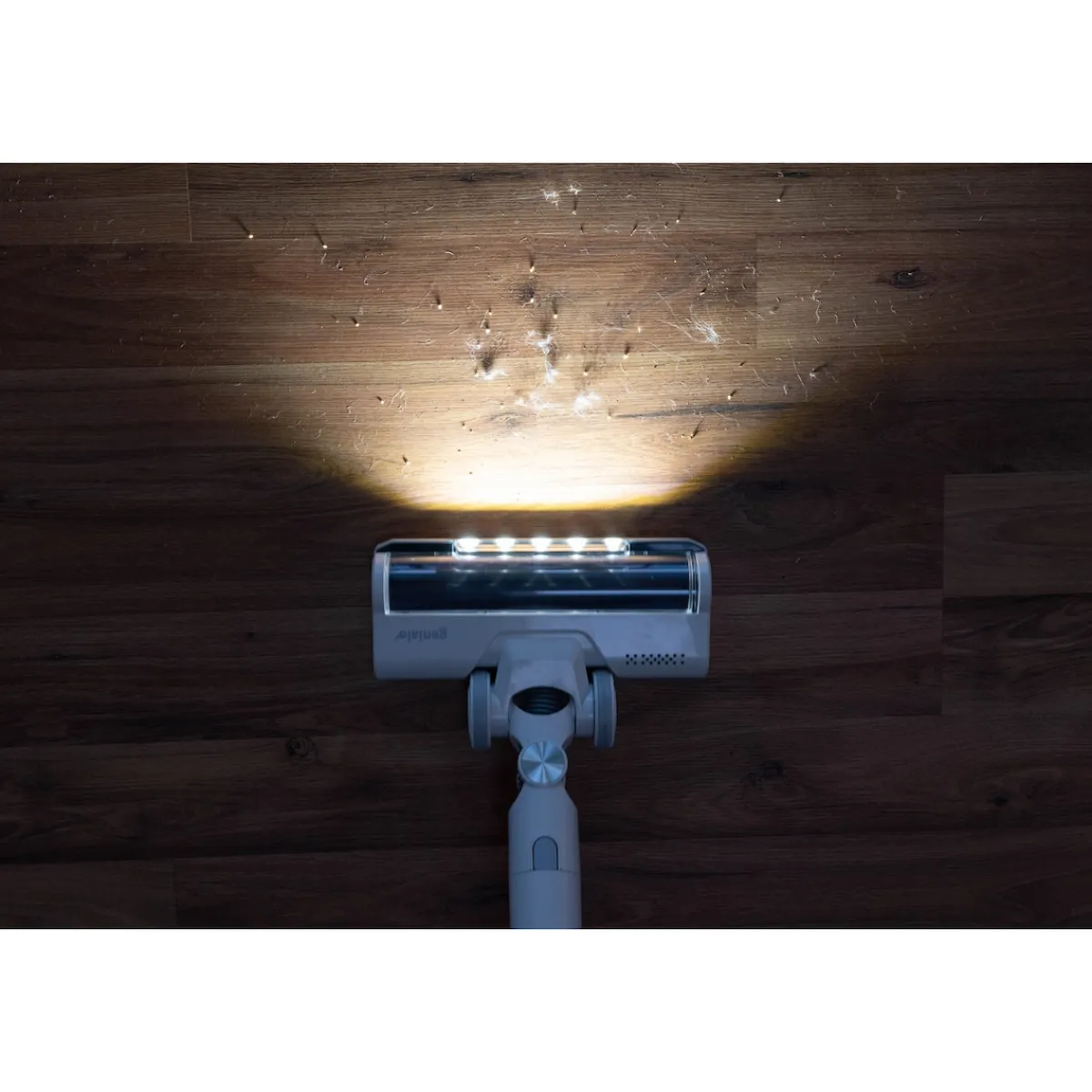 Ein übersichtliches LED-Display macht die Bedienung kinderleicht, und der leistungsstarke Lithium-Ionen-Akku mit 25,9 V in Kombination mit dem langlebigen Hochleistungs-BLDC-Motor mit 350 W garantiert eine effiziente Reinigung. Trotz seiner Kraft arbeitet der Staubsauger extra leise bei nur 70 dB.