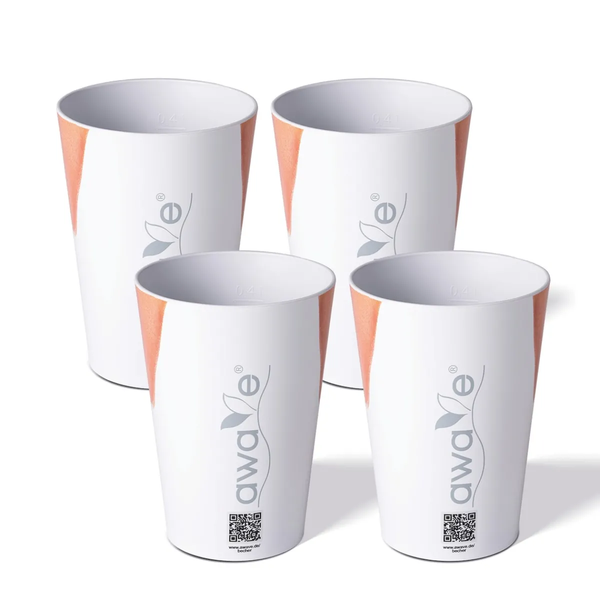 AWAVE – Für eine bessere Zukunft Was unterscheidet uns zu anderen Festival Bechern?Wir sind aus 14,5 recycelten PET-Flaschen hergestellt und dabei lebensmitteltauglich. Warum sind wir so besonders? … weil wir deinen Alltag zum Highlight machen! Ob für ein Picknick, einen Geburtstag oder zu einer Party: wir sind robust, funktionell, für Kaltgetränke und Heißgetränke geeignet und sehen umwerfend gut aus. Dass dabei 14,5 recycelte PET-Flaschen ein zweites Leben erhalten haben, ist unser wertvoller Beitrag zur Müllvermeidung und Ressourcen-Schonung. Dieses Set besteht aus: 4 Festival Becher, je ca. 400 ml, ø ca. 9,1 cm, Höhe ca. 12,8 cmMit Eichstrich bei 400 mlDie wichtigsten Vorteile auf einen Blick:Tolles Trinkbecher Set mit NasenmotivAus 14,5 recycelten PET-Flaschen hergestelltMit Eichstrich bei 400 mlFür Kaltgetränke und Heißgetränke geeignetUmweltfreundlich & gut für die ÖkobilanzNachhaltig, da selbst wieder recycelbar Hygienisch & lebensmitteltauglichLeicht zu reinigen, spülmaschinengeeignetMaterial: rPETVerpackung aus FSC-zertifiziertem Material Warum AWAVE?Weil Ressourcenschonung für uns Herzenssache ist! Plastik gehört nicht in die Umwelt, sondern sollte auf möglichst schonende Weise wieder als Rohstoff in die Produktionsketten miteinfließen. AWAVE sieht sich hier in der Verantwortung und stellt Produkte aus recycelten oder bio-basierten Kunststoffen her, welche selbst wieder recycelt werden können. Somit entsteht ein Kreislauf, den uns die Mutter Natur vorlebt. Zero-Waste für mehr Umweltschutz!