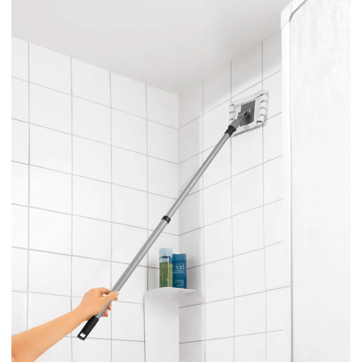 Handlicher Fliesenwischer für Bad und Küche, dessen Länge sich von 65 auf bis zu 95 cm ausziehen lässt. Sorgt für glänzend schöne Fliesen.
