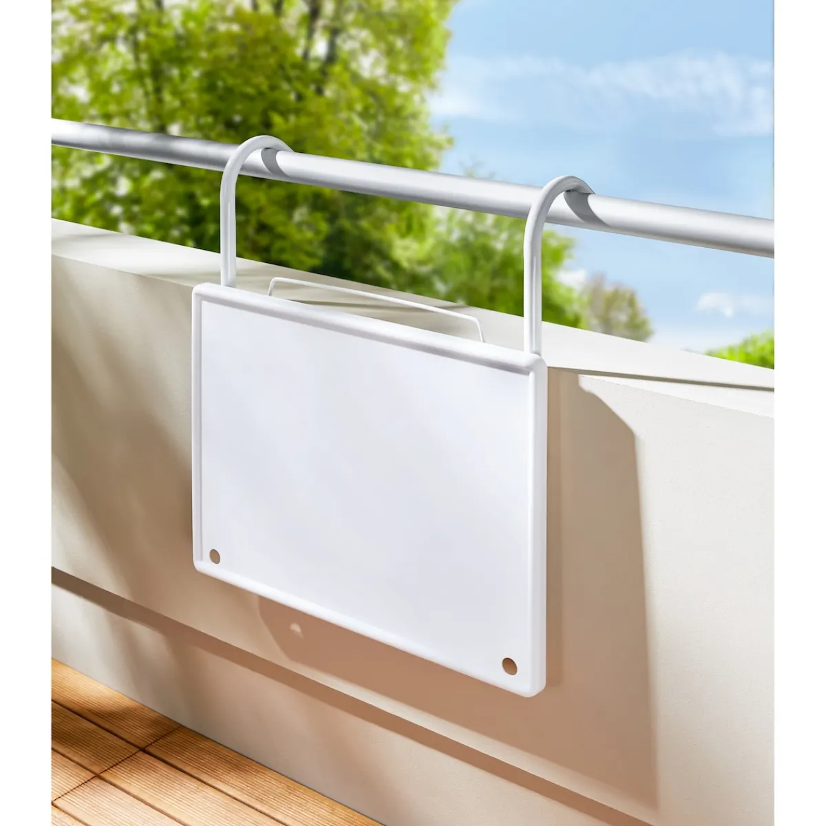Dieser dekorative Klapptisch in moderner Optik schenkt Ihnen eine praktische Ablage für alles, was Sie beim Essen, Lesen oder Entspannen brauchen. Er wird einfach über das Geländer gehängt und bei Nichtgebrauch wird das Tablett einfach abgezogen und unten platzsparend eingehängt.
