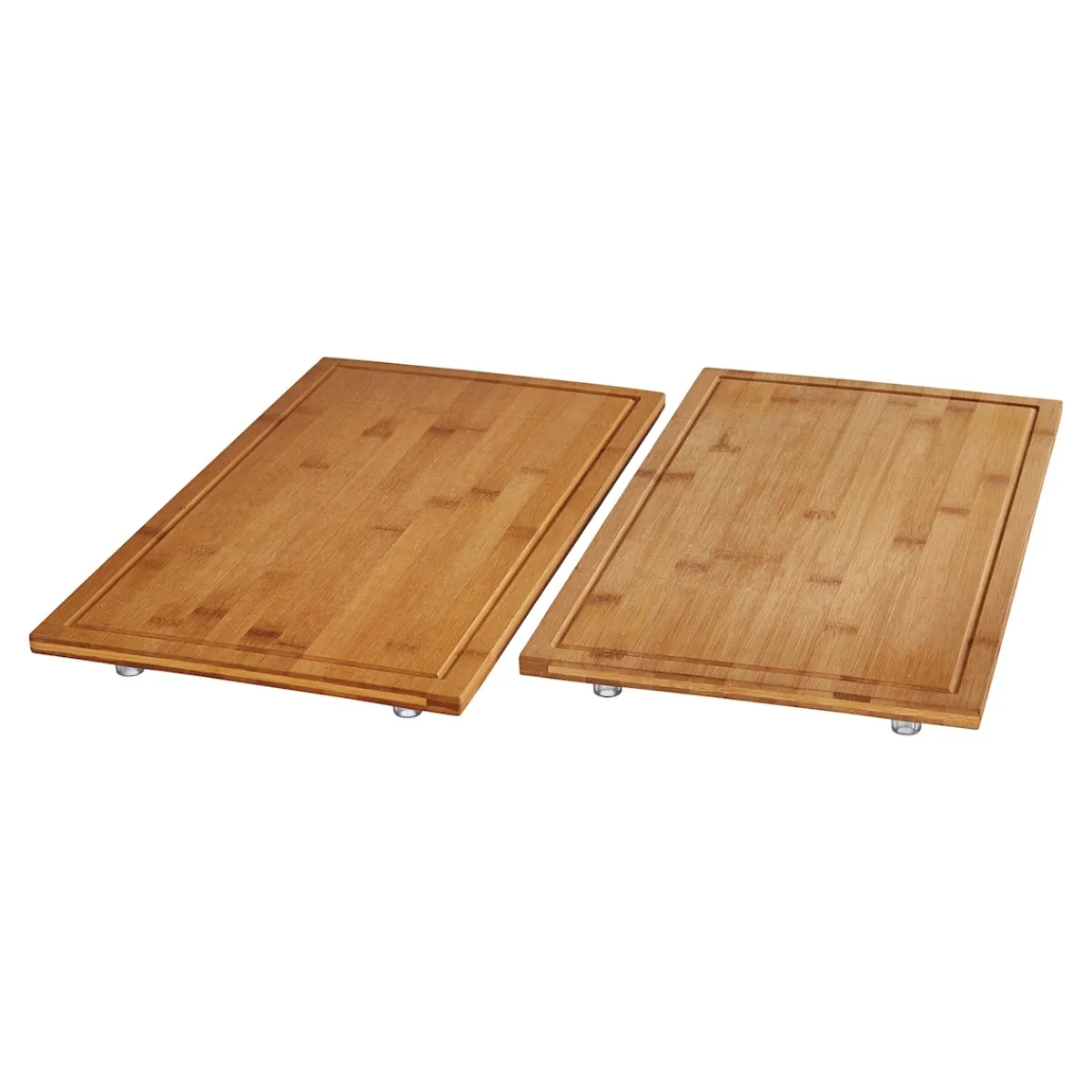 Gleich 2 wertvolle, natürliche Materialien stehen für Sie bei diesen Schneidebrettern zur Auswahl: Bambus – beliebt, hart, schnittfest, hygienisch … die preiswerte Variante, ideal auch für junge Haushalte! Akazie – elegant, wunderschön gemasert, unverwüstlich … die hochwertige Alternative „für immer“! Zeitlos, praktisch und hygienisch, mit rutsch- und kratzfesten Kunststoff-Füßchen und Saftrinne. Auch als robuste, herdschonende Abdeckplatte oder als Spritzschutz zu verwenden.