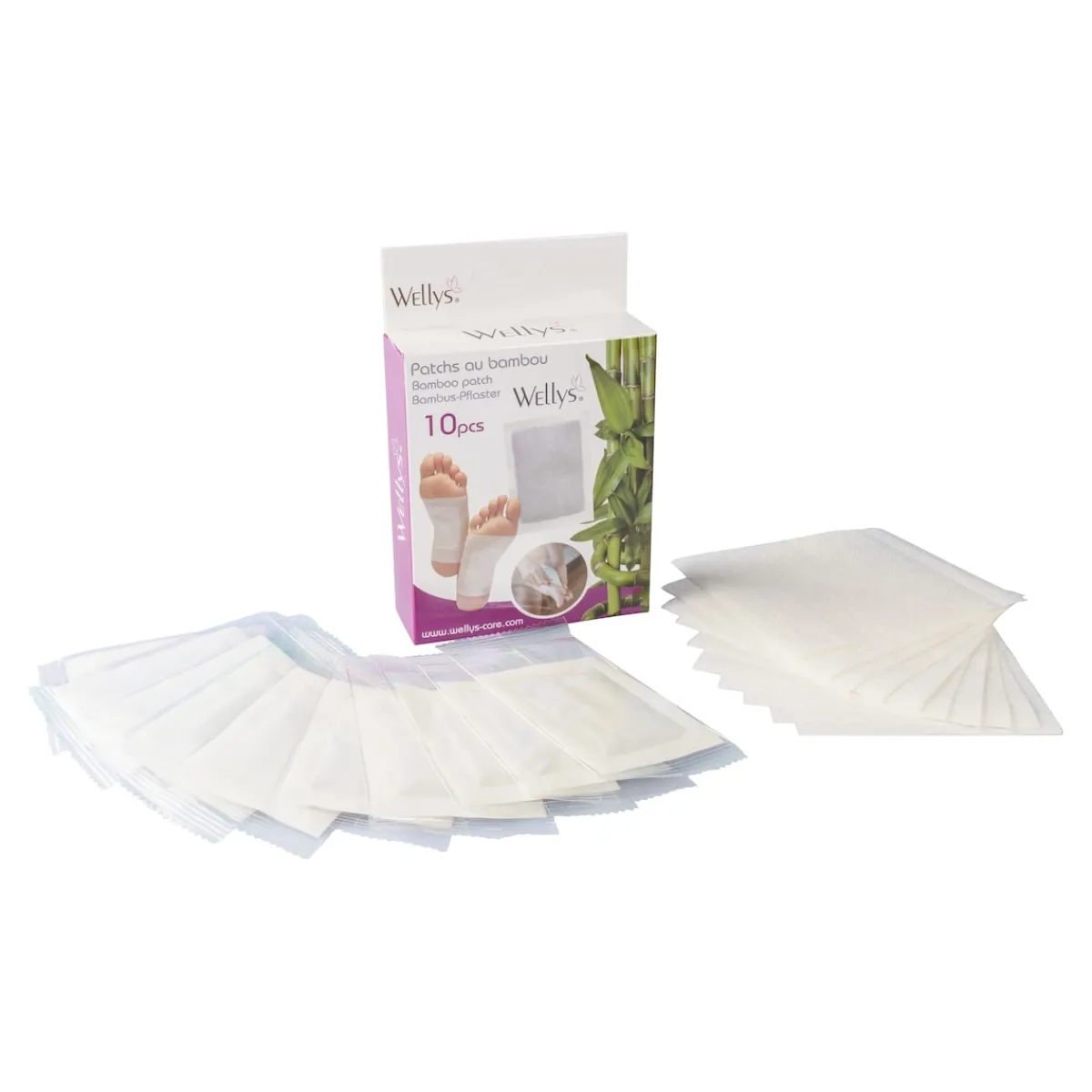 - Nehmen Sie jeweils zwei Klebepflaster und zwei Bambus-Pads aus der Packung.