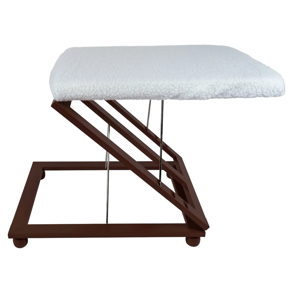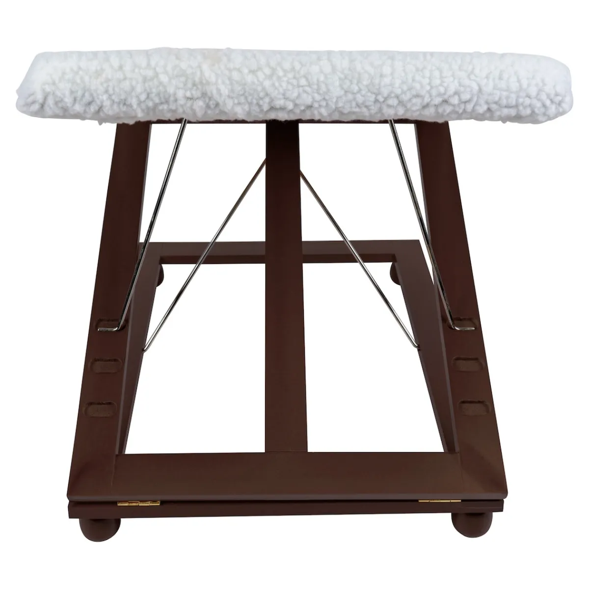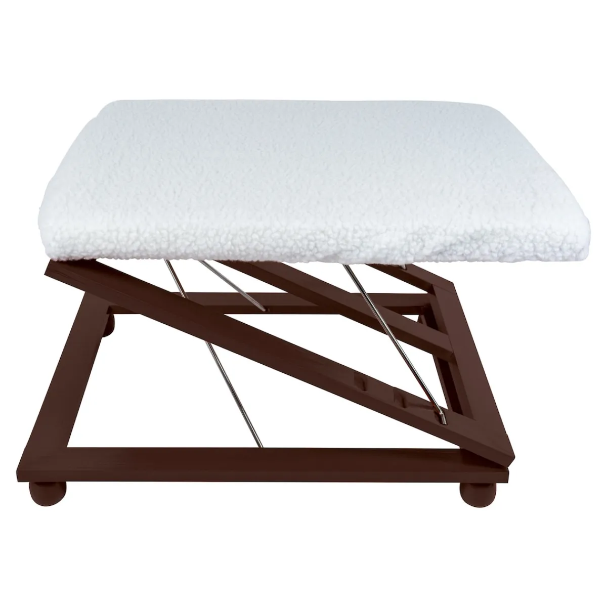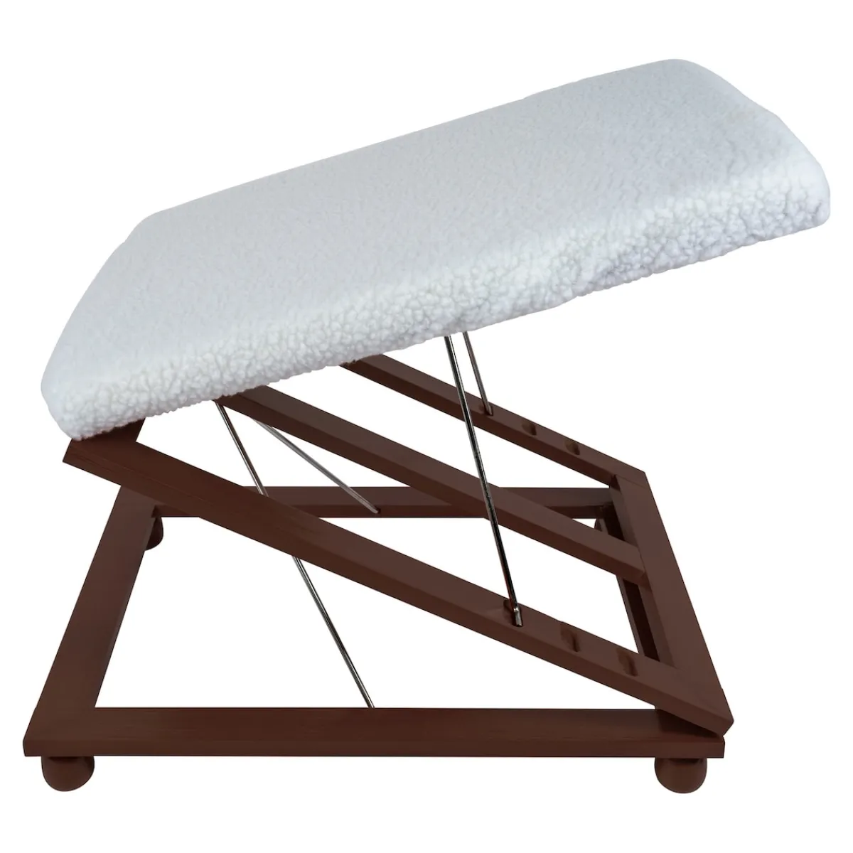 Beim Sitzen auf einem Stuhl oder Sessel sind Hüfte und Knie abgeknickt. Das erschwert den Blutfluss und verhindert, dass das Blut von den Venen zurück zum Herzen transportiert werden kann. Die Folge ist ein Flüssigkeitsstau in Beinen und Füßen, der sie anschwellen lässt und Schmerzen verursacht. Durch den Stau steigt aber auch das Risiko für eine Thrombose und das Entstehen von Besenreisen und Krampfadern. Um einen Flüssigkeitsstau zu vermeiden und Ihre Venen zu entlasten, sollten Sie Ihre Beine, wann immer es geht, hochlegen. Mit dieser Beinstütze aus Metall und Pinienholz ist das ganz einfach und komfortabel möglich.