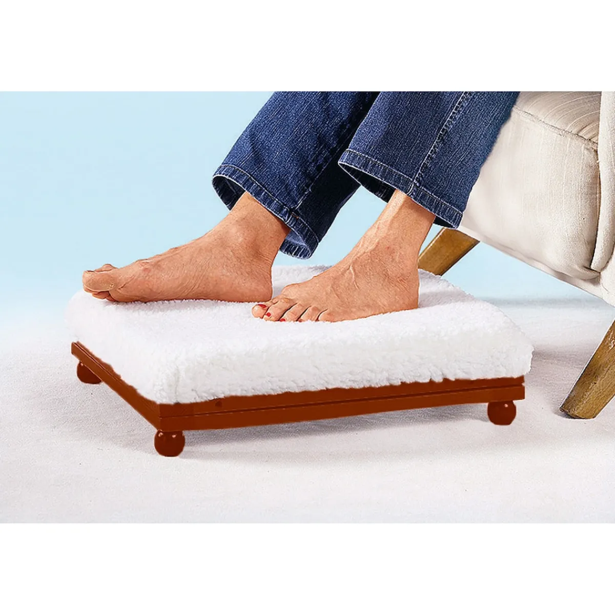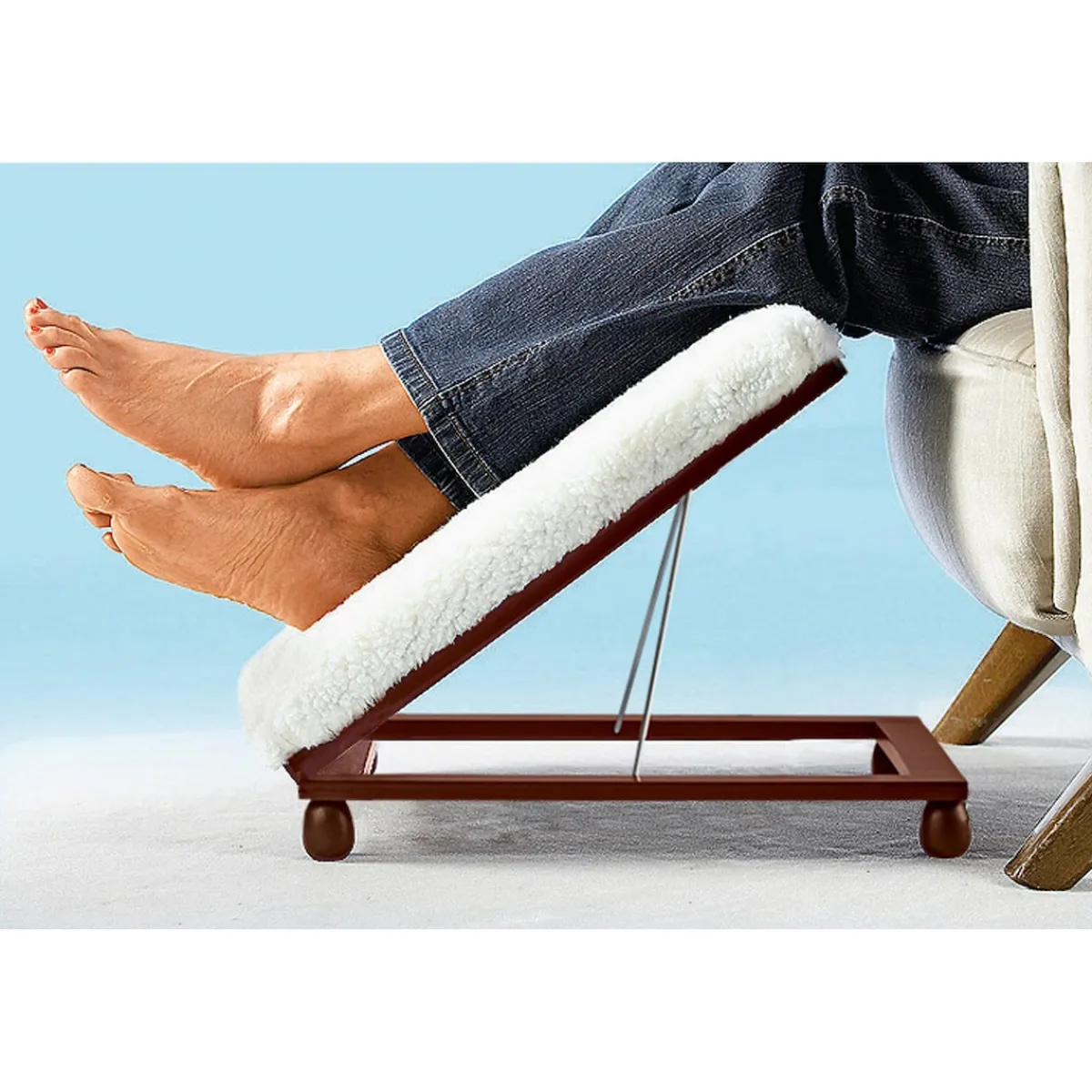 Die Beinstütze verwandelt jeden Stuhl oder Sessel in eine Wohlfühloase. Stellen Sie einfach die Stütze ganz nah vor das Sitzmöbel und legen Sie Ihre Beine hoch. Dabei können Sie selbst entscheiden, ob die Beinstütze leicht geneigt ist oder sich in der Waagerechten befindet. Die Waagerechte ist die ideale Position, um Ihren Beinen und Füßen nach einem anstrengenden Tag eine wohlverdiente Pause zu verschaffen und den Venenfluss zu unterstützen.