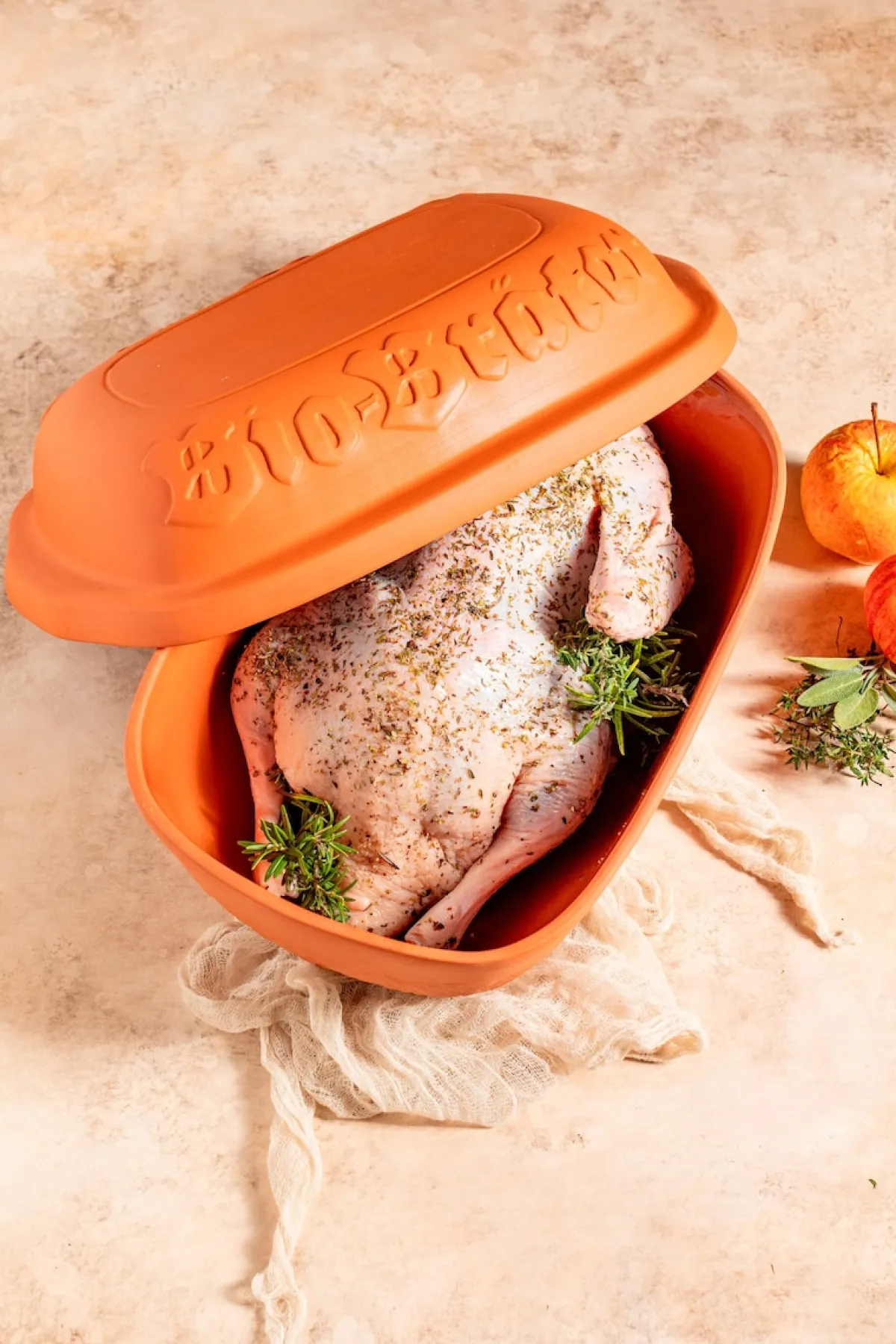 Mit diesem vielseitigen Bio Bräter der österreichischen Traditionsmarke MÄSER zaubern Sie mühelos einen perfekten Sonntagsbraten auf den Tisch. Der Schmortopf mit Deckel aus feinem, naturbelassenem Ton ermöglicht durch die natürliche Wasserspeicherung ein besonders schonendes Dampfgaren ohne weitere Fettzugabe. Alle Vitamine und Nährstoffe bleiben erhalten. Servieren Sie Braten, Ente, Gans, Auflauf, Gemüse, Brot und anderes Gargut direkt im Tontopf aus dem Backofen auf Ihren Esstisch. Ein Festmahl für alle Sinne.