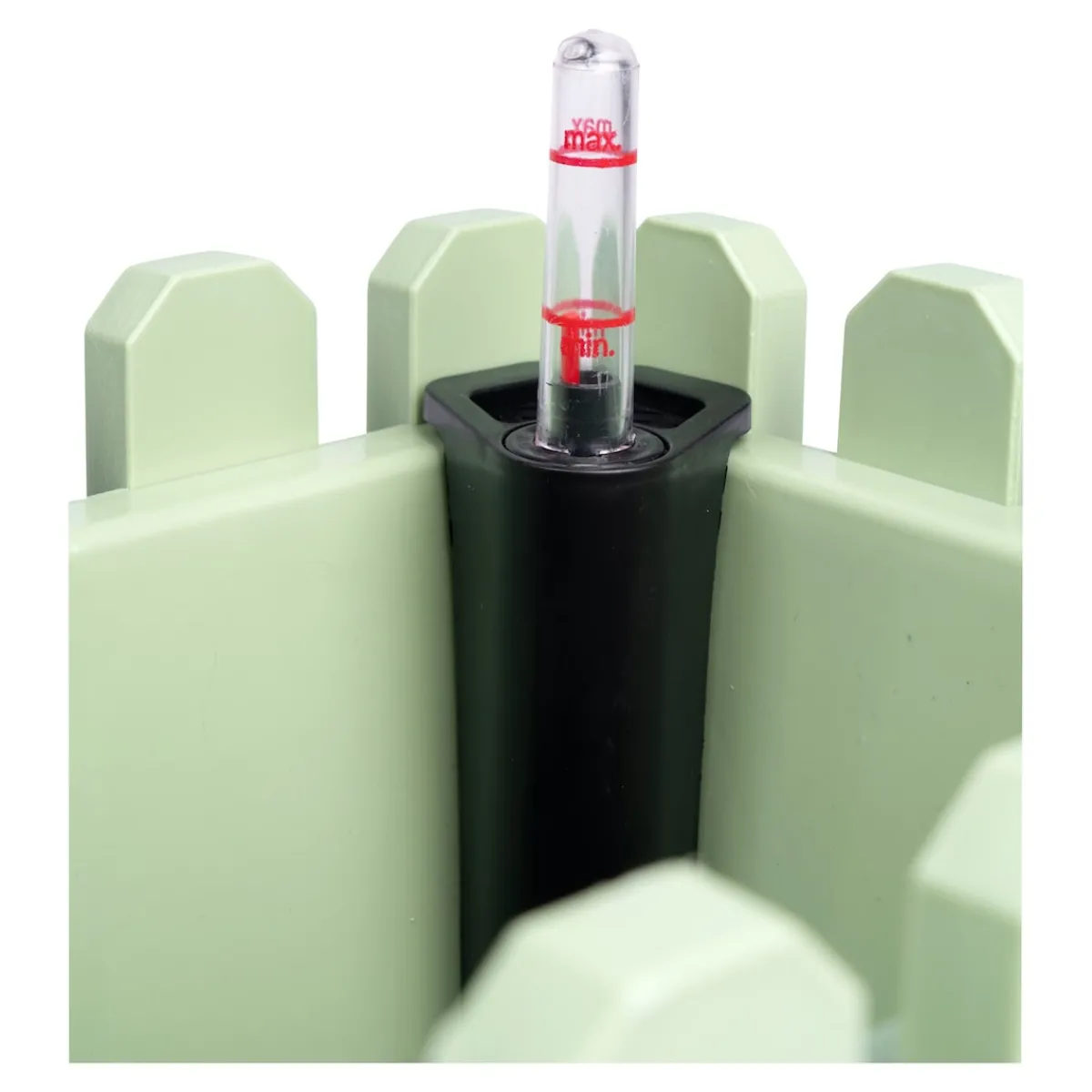 Dieser Blumentopf vereint Stil und Funktionalität! Dank des integrierten Bewässerungssystems mit Wasserspeicher erhalten Ihre Pflanzen nur bei Bedarf Wasser – tägliches Gießen wird überflüssig. Die Wasserstandsanzeige hilft, die ideale Feuchtigkeit zu gewährleisten und Staunässe zu vermeiden. Nach der Saison ist der Zwischenboden einfach herausnehmbar und mühelos zu reinigen.