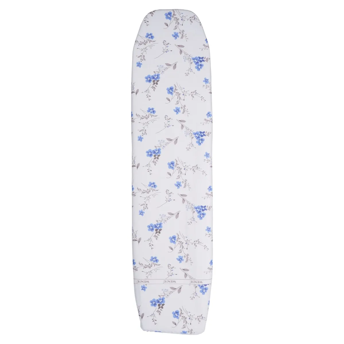 Das Besondere an dem Bügelbrettbezug ist seine Unterseite: Sie ist mit einer keramischen Beschichtung ausgestattet, die die Hitze des Bügeleisens effektiver reflektiert als bei herkömmlichen Bügelbezügen. Auch die Oberseite kann sich sehen lassen. Sie überzeugt mit einem zeitlosen floralen Muster und sorgt mit einer Easy Glide-Schicht für exzellente Gleiteigenschaften, die das Bügeln zum Kinderspiel machen. Unter dem Bezug befindet sich die ebenfalls im Lieferumfang enthaltene Molton-Auflage, die sich mit einem Gummizug fest am Bügelbrett befestigen lässt.