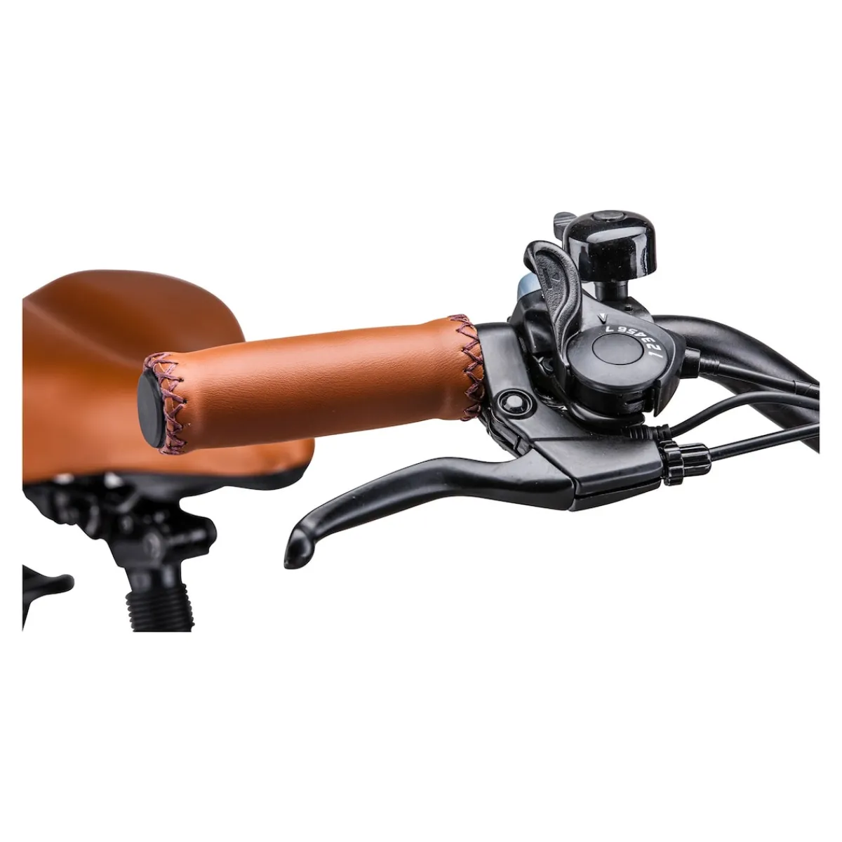 Schlicht und einfach mit idealen Eigenschaften: Rutschsichere Pedale, gepolsterte u. gefederter Sattel, Front- u. Rückleuchten, Scheibenbremsen, Shimano 7-Gangschaltung, leicht zugänglicher Akku.