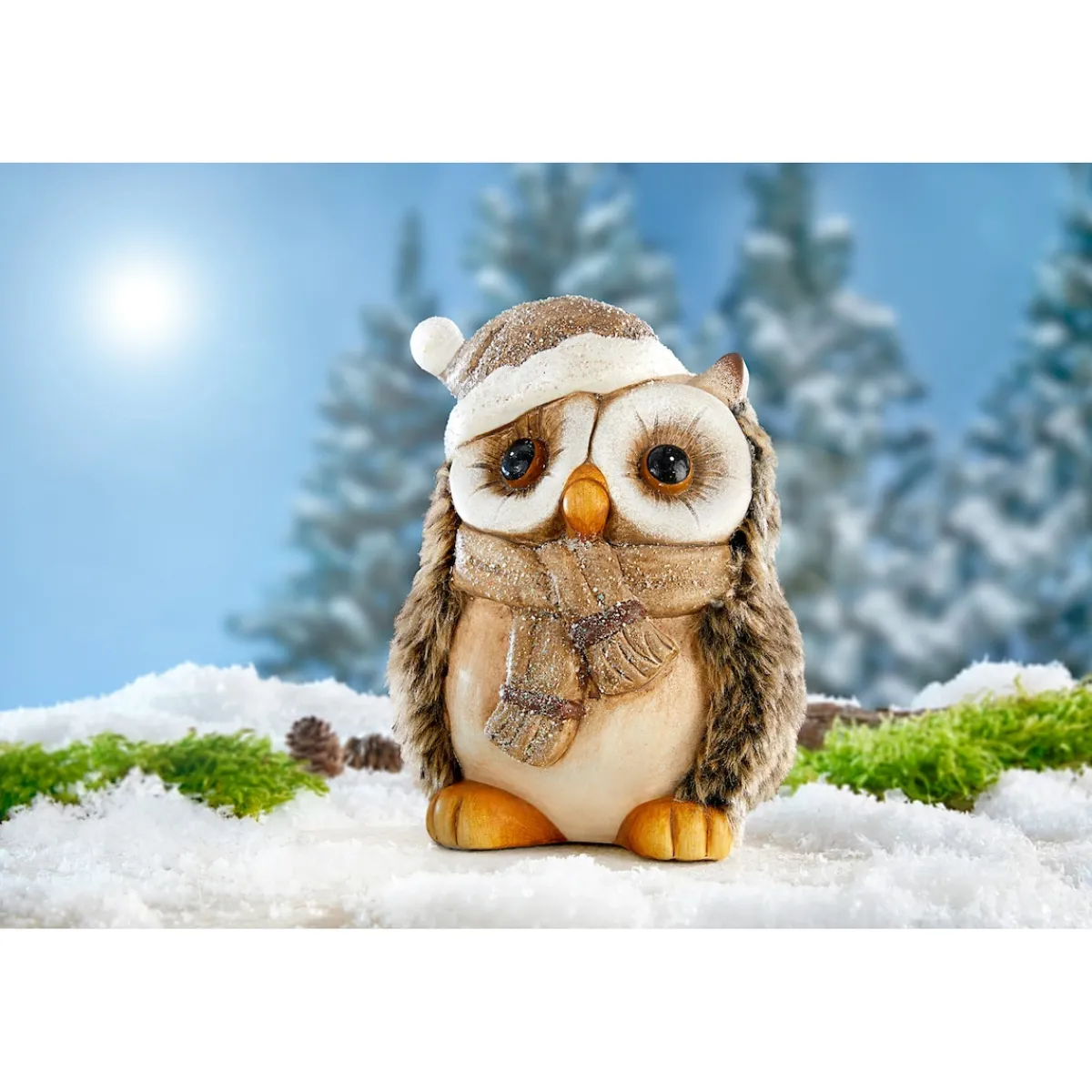 Eule „Frostl“ scheut sich nicht vor eisigen Temperaturen: eingepackt mit Mütze und Schal macht sie es sich auf Ihrer Kommode oder vor Ihrer Haustür bequem – und sieht mit ihrem flauschigen Federkleid unglaublich putzig aus!