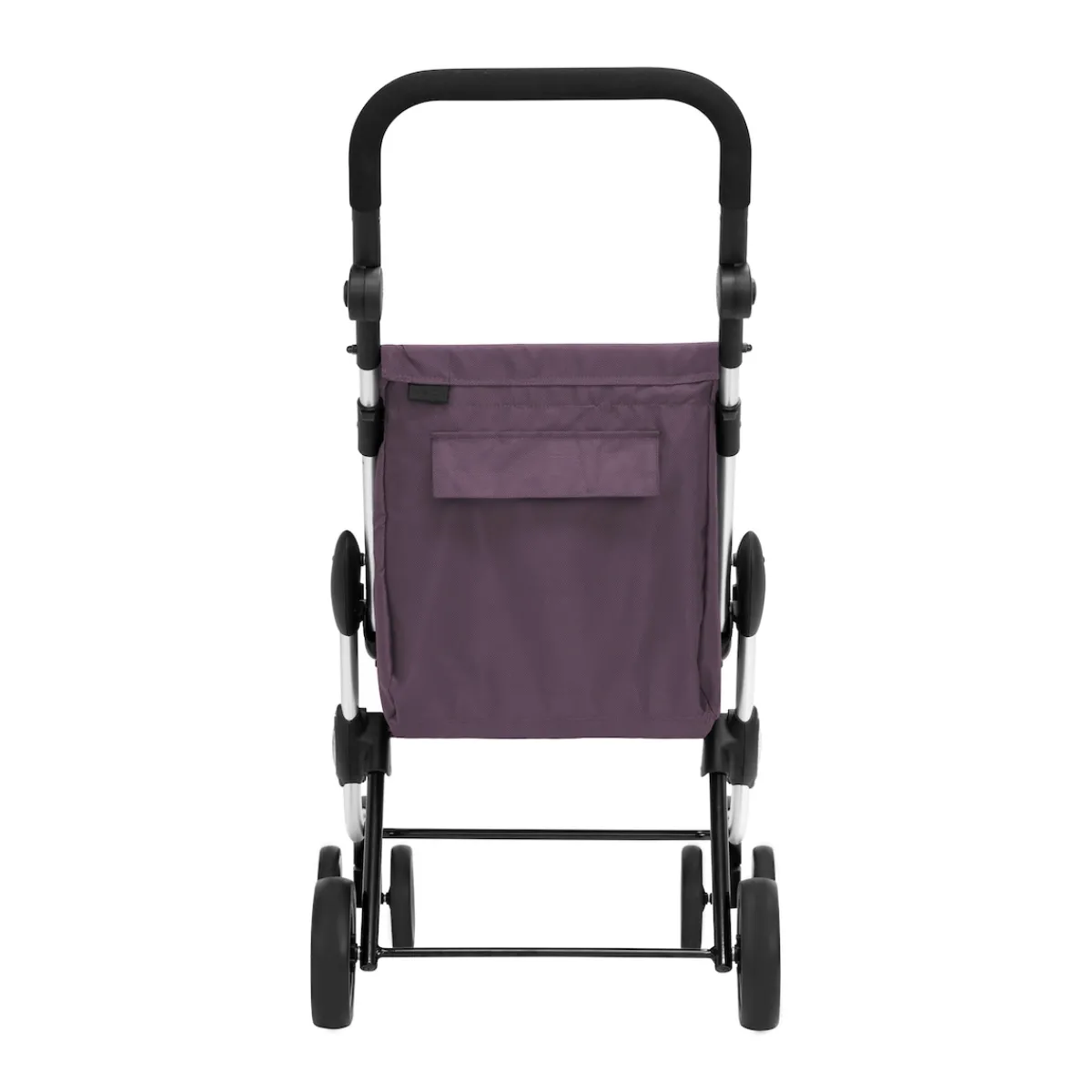 Der Einkaufstrolley verfügt über ein leichtes, aber dennoch robustes Aluminiumgestell. Es lässt sich kompakt zusammenfalten und mühelos im Kofferraum oder zu Hause verstauen. Der Einkaufswagen ist mit vier wartungsarmen und leise rollenden EVA-Rädern ausgestattet. Bei den Massivreifen besteht keine Gefahr, dass sie Luft verlieren und sie müssen nicht aufgepumpt werden. Durch die um 360 Grad drehbaren Doppelräder vorne lässt sich der wendige Trolley ganz leicht schieben oder ziehen. Seitliche Reflektoren sorgen bei Dunkelheit oder schlechtem Wetter für eine gute Sichtbarkeit im Straßenverkehr. Mit einem Leergewicht von 5 Kilogramm wird selbst die Fahrt mit öffentlichen Verkehrsmitteln zum Kinderspiel. Ein umständliches und kraftraubendes Schleppen von schweren Taschen entfällt. Der elegante Einkaufstrolley We Go Basic mit XL-Tasche ist in Rot, Hellblau, Schwarz, Blau, Grau und Violett verfügbar.