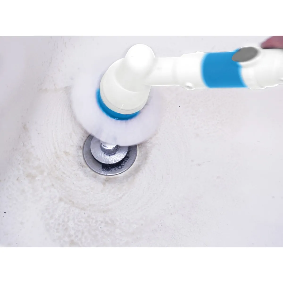 Der Hurricane Spin Scrubber wird mit drei verschiedenen Reinigungsaufsätzen geliefert, die sich für unterschiedliche Reinigungszwecke eignen. Die Kegelbürste ist ein Spezialist für enge Fugen und eignet sich dadurch optimal für den Einsatz im Bad oder in der Küche. Hier entfernt sie dank der Kraft des Spin Scrubbers problemlos festsitzenden Schimmel und Schmutz. Die kuppelförmige Bürste sorgt in Duschtassen und Waschbecken für Sauberkeit und beseitigt mühelos hartnäckige Kalk- und Seifenränder. Die Flachbürste eignet sich hingegen für große Flächen wie Böden, Decken und Wände. Sie lässt sich hervorragend zum Säubern von Balkon- oder Terrassenböden verwenden, stellt ihre Reinigungsqualitäten aber auch am Wohnwagen unter Beweis. Dank der mitgelieferten Verlängerungsstange sogar besonders rückenfreundlich, ohne Bücken oder Strecken.