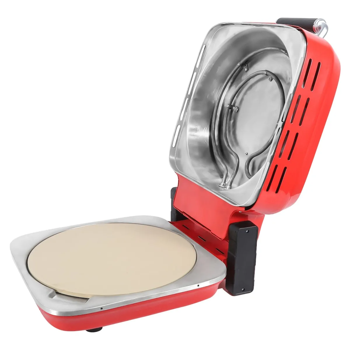 Lieferdienst war gestern! Mit diesem leistungsstarken Ofen machen Sie sich die perfekte Pizza in wenigen Minuten ganz einfach selbst! Auf dem Stein wird die Pizza super schnell und gleichmäßig bei sehr hoher Hitze gebacken – so schmeckt Ihre Pizza garantiert wie vom Lieblingsitaliener. Mit stufenloser Temperaturregelung und Cool-Touch-Griff. Herausnehmbarer Pizzastein: Spülmaschinengeeignet.