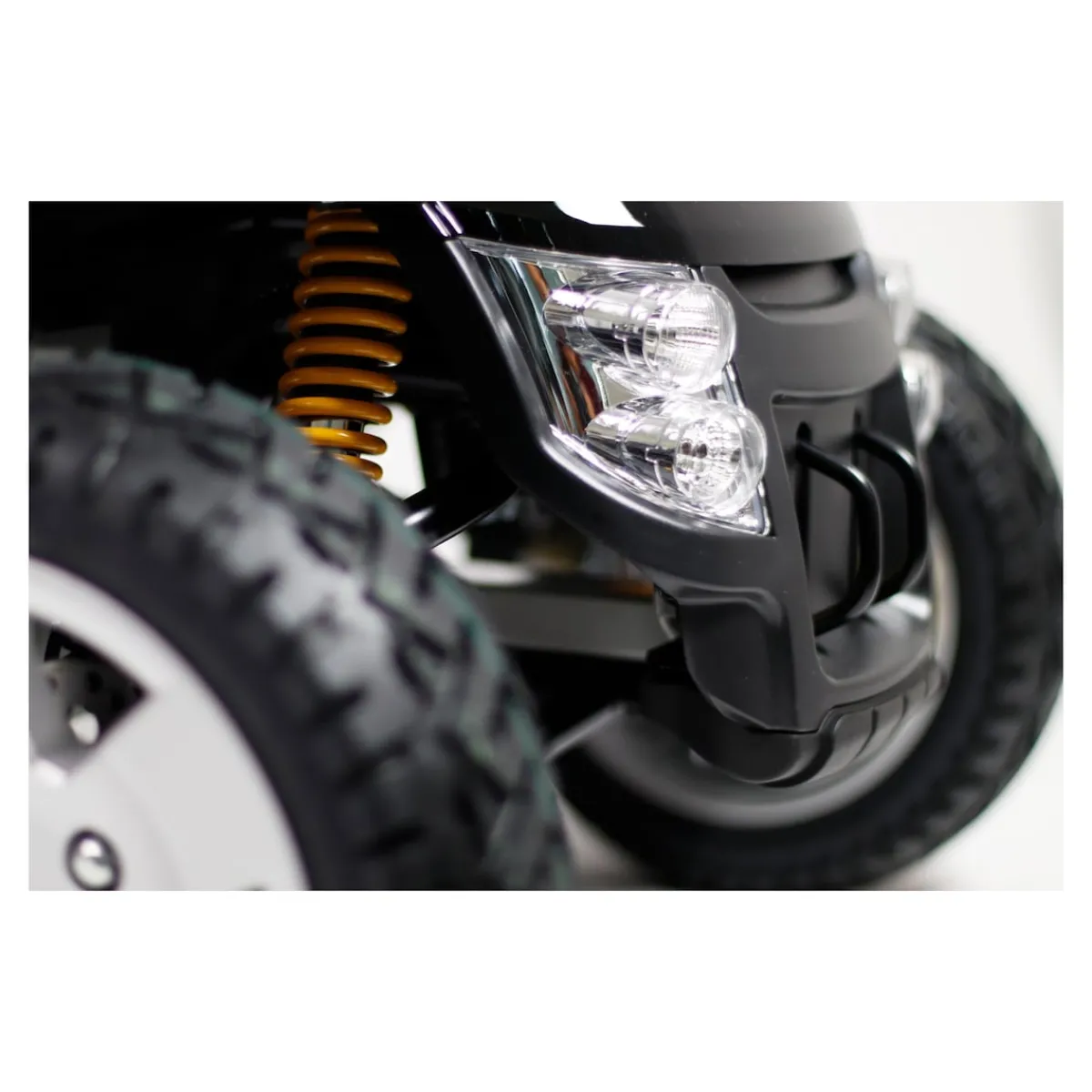 - 4 große Räder auf Alu-Felgen und eine Federung der Vorder- und Hinterachse