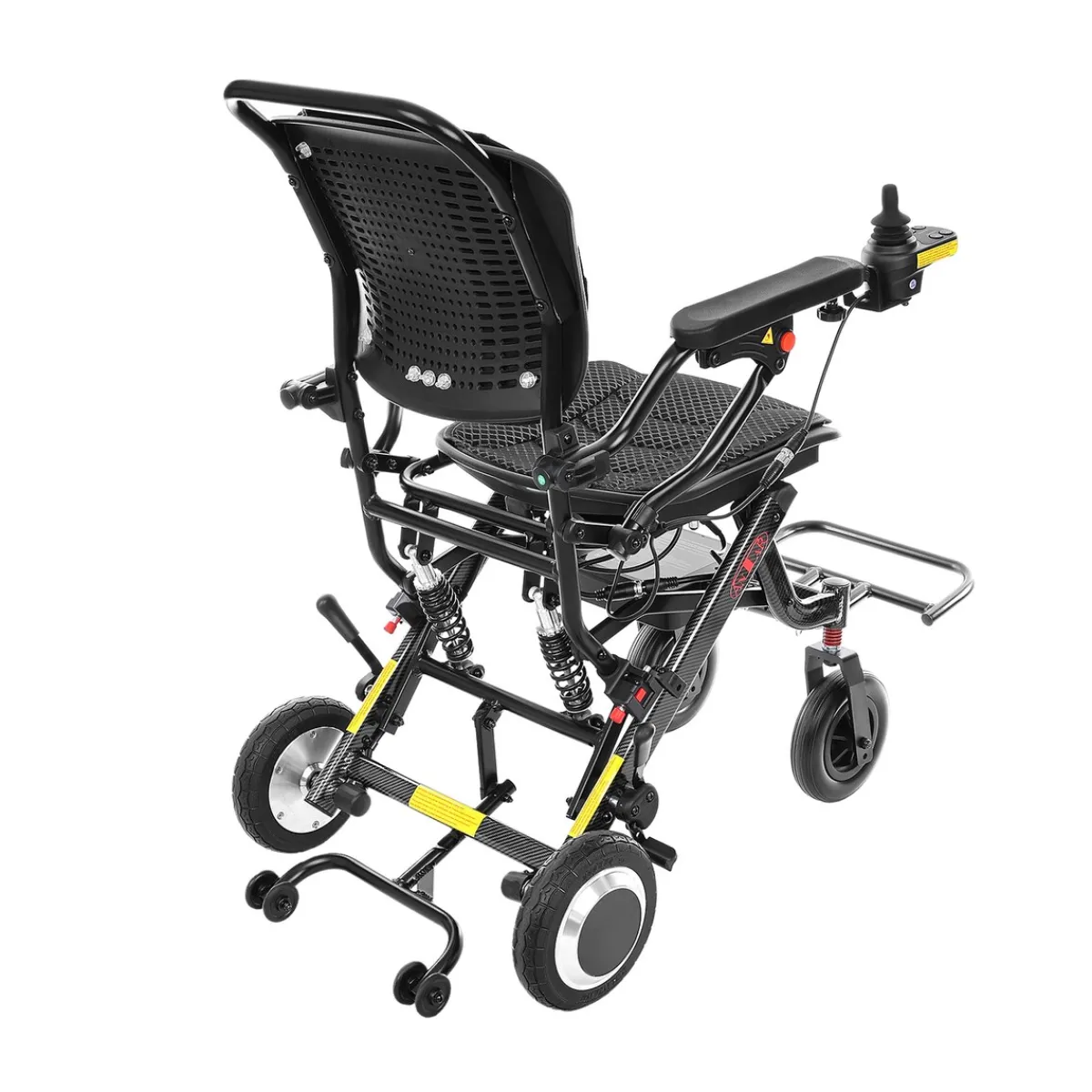 Der ergonomische Sitz und die abnehmbare Rückenlehne machen längeres Sitzen angenehm, während die verstellbaren Fußstützen und klappbaren Armlehnen eine flexible Nutzung im Alltag ermöglichen. Der Rollstuhl lässt sich dank der Lithiumbatterie und einem 180 W Bürstenmotor mühelos steuern – perfekt für Einkäufe, Spaziergänge oder Ausflüge.