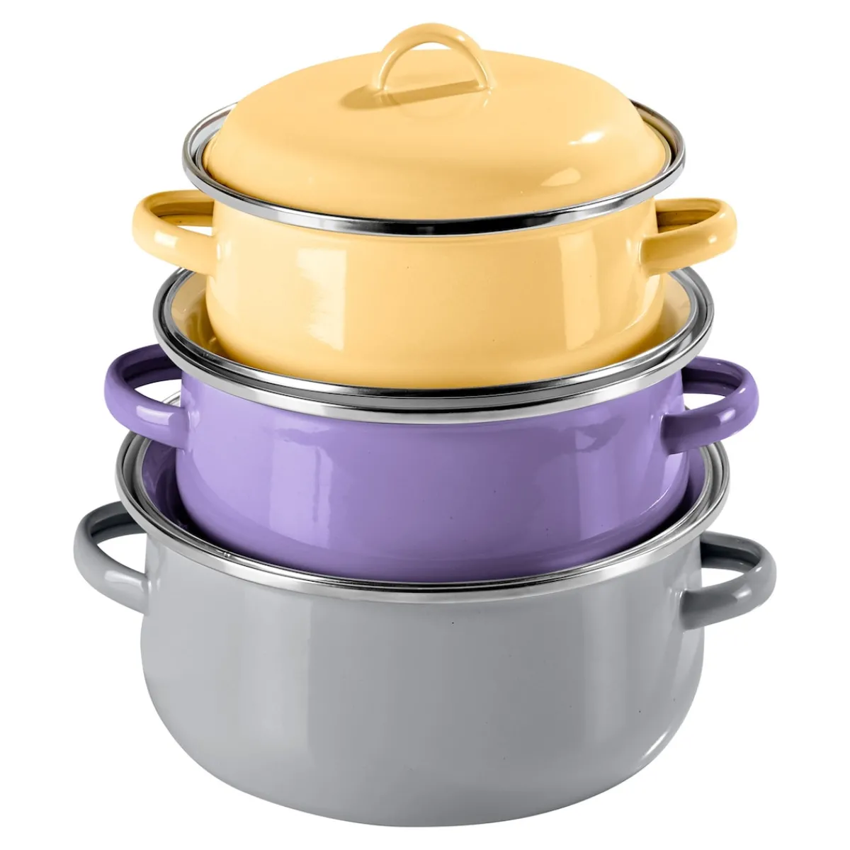 Erinnern Sie sich an die köstlichen Gerichte aus vergangenen Zeiten? Unser 6-teiliges Emailletopf-Set „Trend“ bringt diesen nostalgischen Flair zurück in Ihre Küche. Diese Töpfe sind nicht nur stapelbar und platzsparend, sondern auch ein stilvolles Statement für Ihre kulinarischen Kreationen. Tauchen Sie ein in die Erinnerungen und zaubern Sie zeitlose Gerichte – ganz im Stil von Omas Kochkunst.