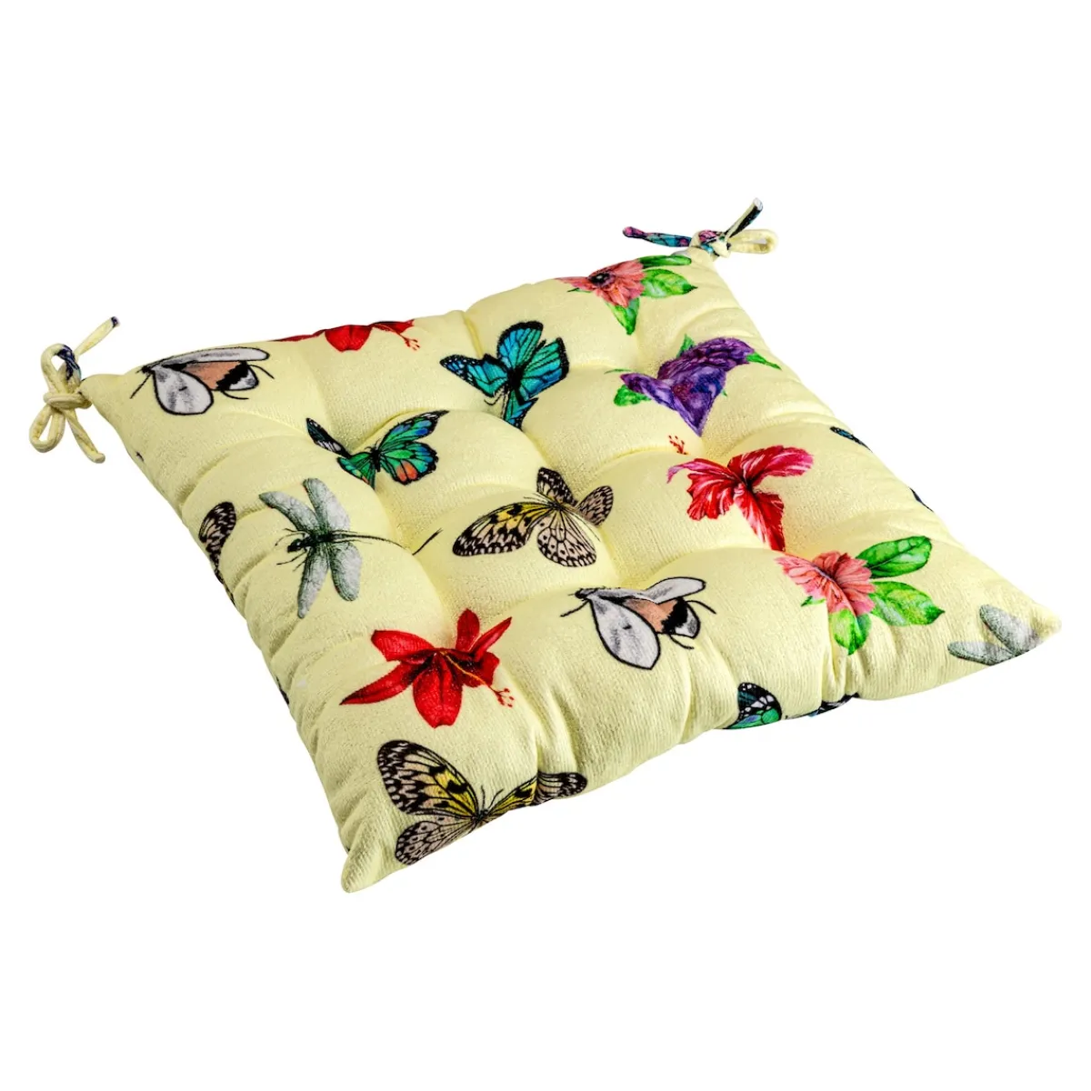 Das Frottee-Sitzkissen „Schmetterling“ verbindet Komfort mit verspieltem Design. Der kuschelige Frottee-Stoff macht das Sitzen besonders angenehm – egal ob drinnen oder draußen. Das sommerliche Schmetterlingsmotiv bringt Farbe auf Ihre Sitzmöbel und sorgt für gute Laune. Ideal für Stühle, Bänke oder Loungemöbel – und dank der pflegeleichten Eigenschaften auch im Alltag schnell einsatzbereit.