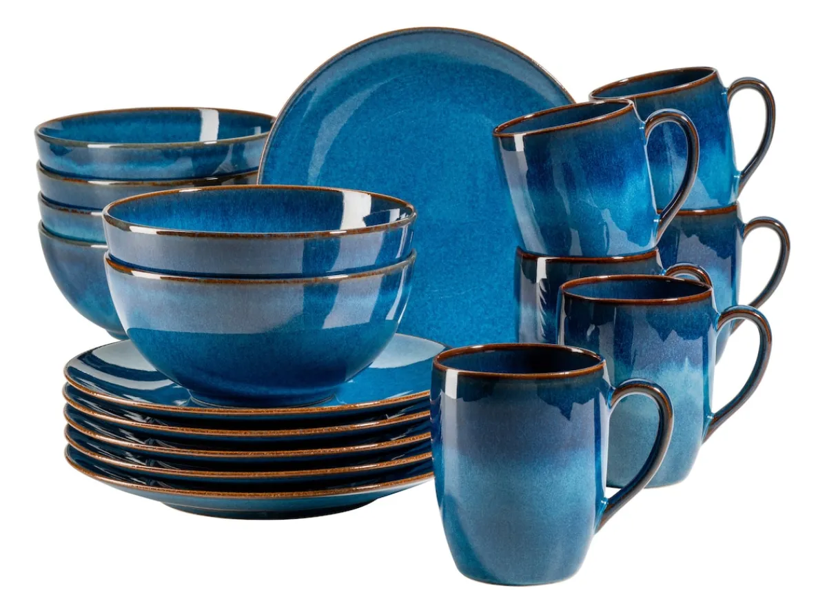 Dieses 18-teilige Frühstücksgeschirr Service aus hochwertigem Steinzeug besteht aus