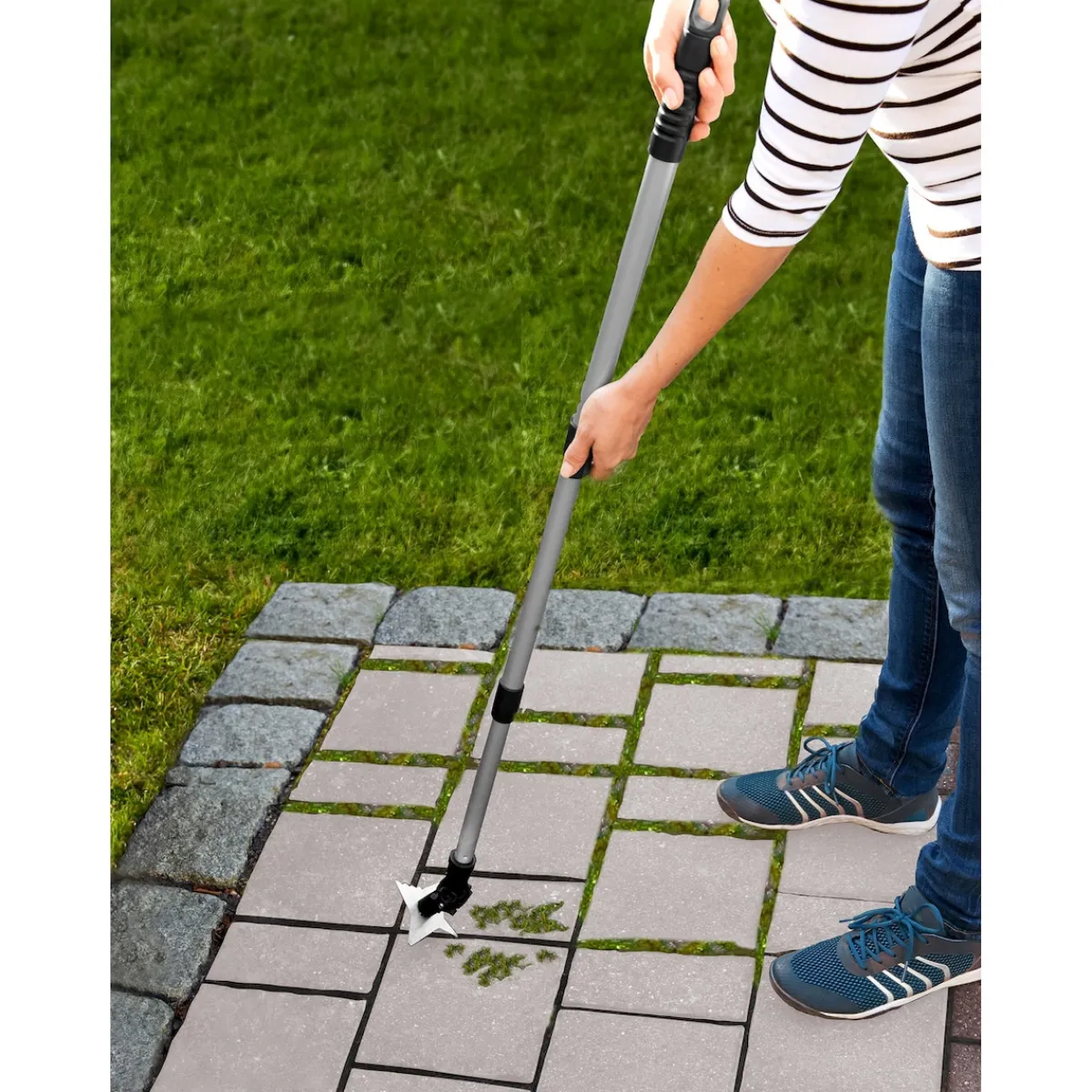 Der Fugenkratzer „4-Zack“ macht kurzen Prozess mit Moos und Ablagerungen. Mit seiner vielseitigen Technologie erreichen Sie selbst schwer zugängliche Stellen im Nu. Dank des verstellbaren Gelenkkopfs wird die Pflege Ihrer Wege und Terrassen mühelos und effizient. Befreien Sie Ihre Außenbereiche im Handumdrehen von lästigem Unkraut und erhalten Sie einen gepflegten, sauberen Look.