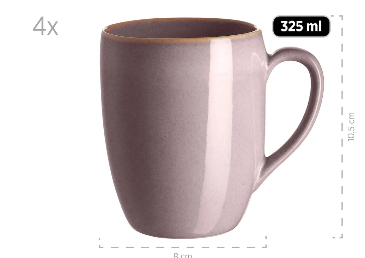 4 x Kaffeebecher mit (10,5 cm hoch, 325 ml Füllmenge)