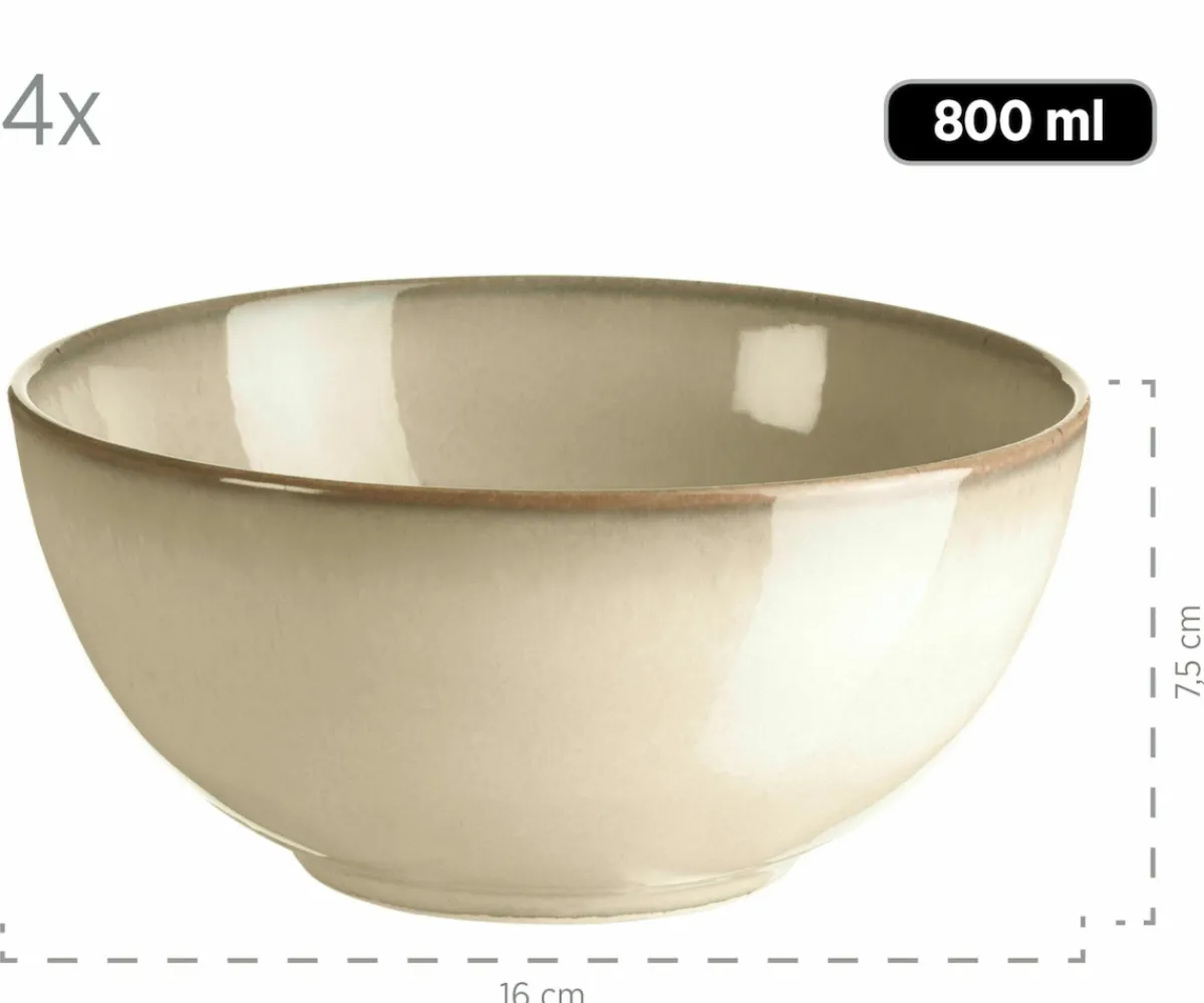 4 x Mehrzweckschale für Suppen, Müsli u.v.m. mit Ø 16 cm (800 ml Füllmenge)