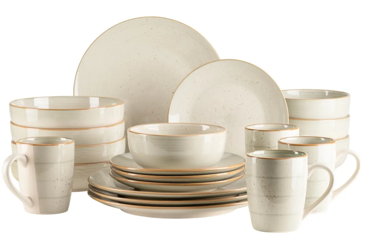 Die Serie „Valmera“ steht für rustikalen Vintage-Look mit modernen Farben und Formen. Das Keramikgeschirr, der Marke Mäser, zaubert im Nu ein fröhliches Ambiente auf Ihren Tisch. Valmera kombiniert kreisförmige, verspielte Linien mit einem farblich abgesetzten Rand und dezenten Punkten für einen charmanten Handmade-Touch. Das robuste Steinzeug Material ist pflegeleicht und geeignet für Spülmaschine und Mikrowelle. Erhältlich in den Farbstellungen Hellblau, Hellgrün und Hellgrau.