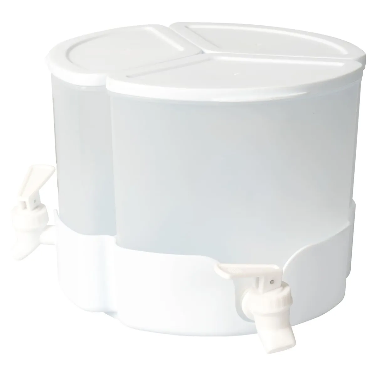 Der clevere Getränkeprofi macht dank seiner großen Behälter mit Zapfhahn seinem Namen alle Ehre, sortiert Säfte und schenkt sie sauber und schnell ein. Dicht verschlossen und sicher auf der Plattform stehend, lassen sich die 3 Gefäße rundherumdrehen. Das kompakte Maß passt in jeden Kühlschrank!