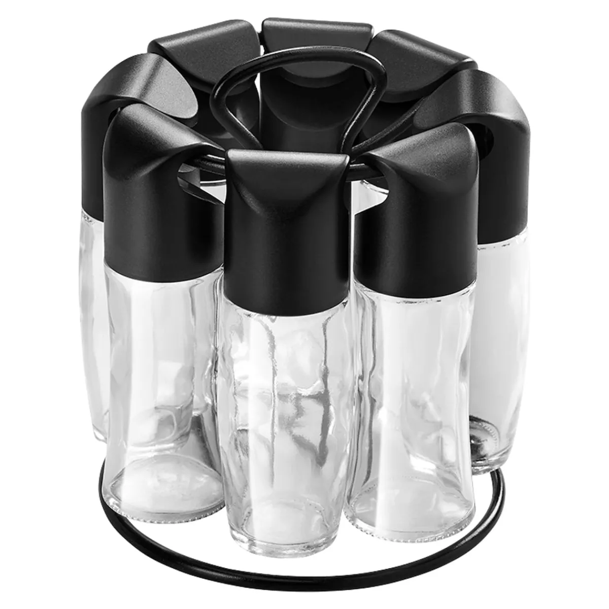 Der Gewürzständer „Spice8“ ist der perfekte Begleiter für deine Küche! Mit 8 luftdicht verschließbaren Glasbehältern in zwei praktischen Größen hast du deine Lieblingsgewürze immer griffbereit. Der drehbare Ständer mit Griff sorgt für schnellen Zugriff, während die 16 austauschbaren Streueinsätze dir vielseitige Verwendungsmöglichkeiten bieten.