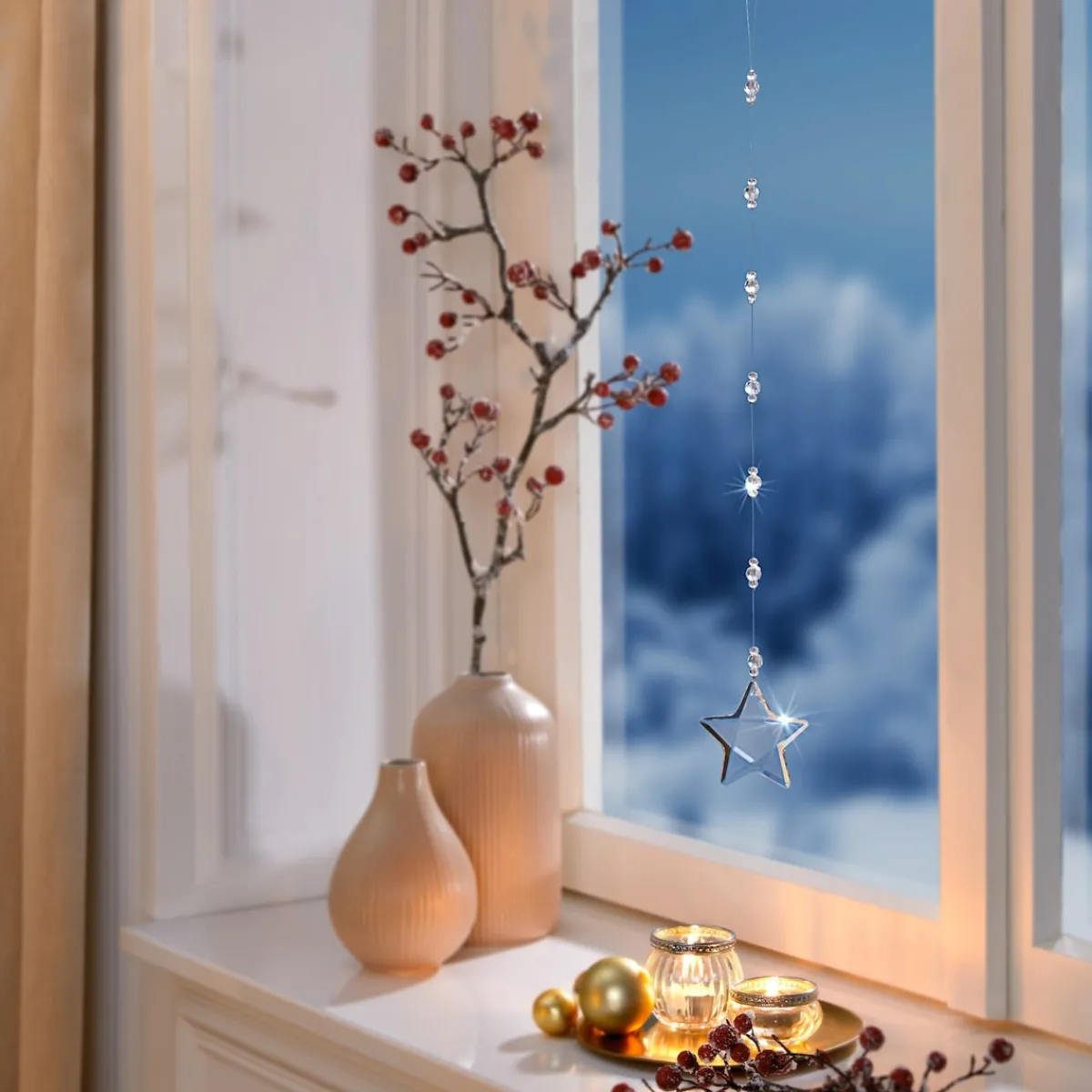 Kristallklarer Weihnachtszauber für Ihr Fenster: Dieser filigrane Stern-Hänger tanzt im Licht und hüllt den Raum in funkelnde Weihnachtsmagie.