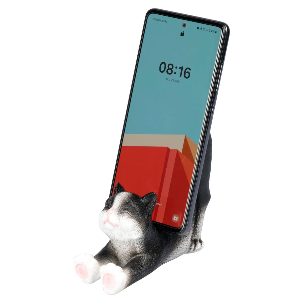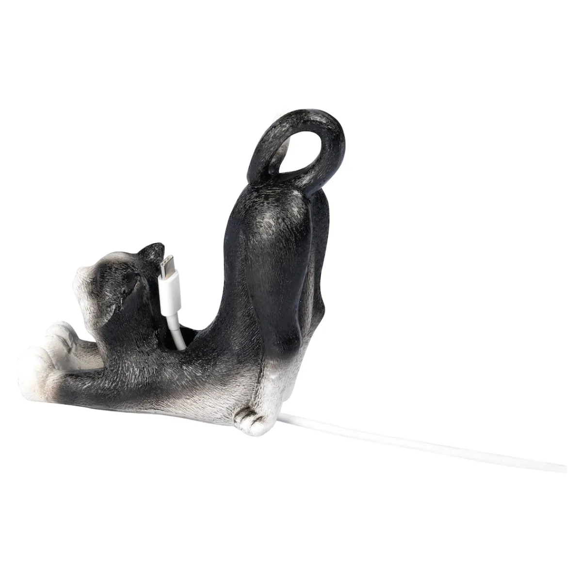 Diese entspannte Katze ist reizende Deko und Aufbewahrungsort für Ihr Handy zugleich! Genial: Fädeln Sie das Ladekabel durch den Katzenbauch – schon wird das Kätzchen zum praktischen Ladeplatz!