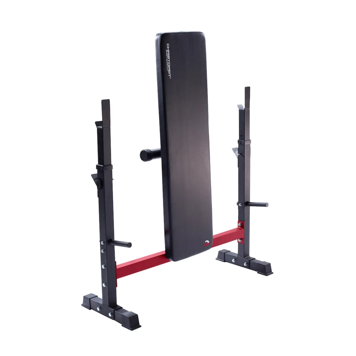 - Ablage für Langhantelstange und Gewichtsscheiben an der Hantelbank (auch in der zusammengeklappten