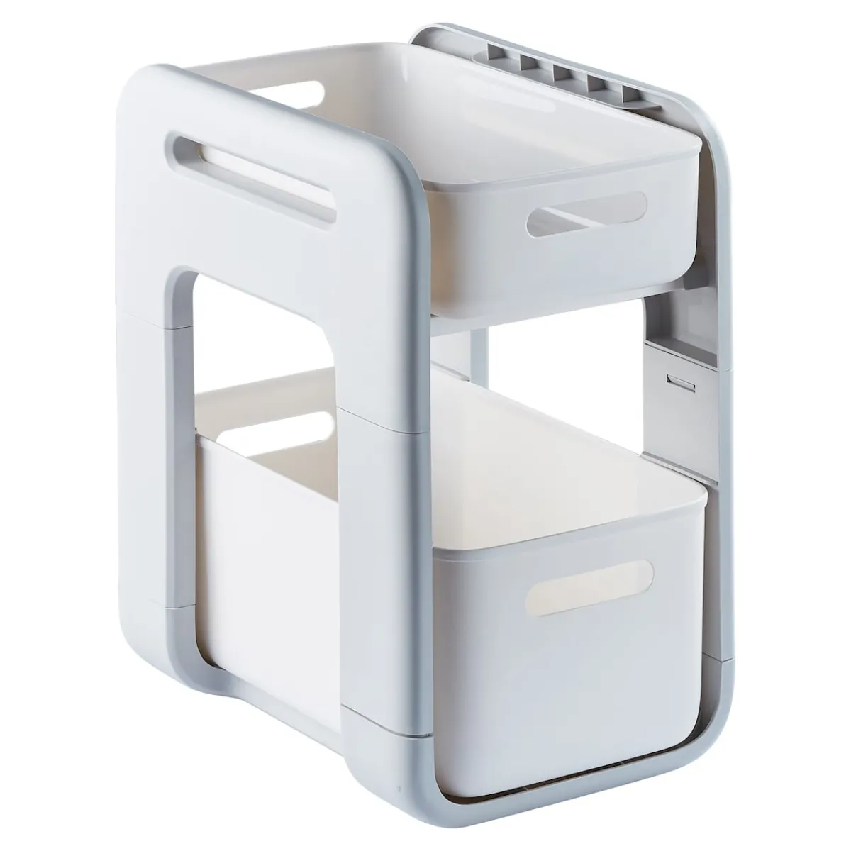 Mit diesem genialen Haushalts-Organizer schaffen Sie geordneten Stauraum in Unterschränken. 2 ausziehbare Schubladen halten Vorräte, Reinigungsmittel u. s. w. übersichtlich griffbereit.