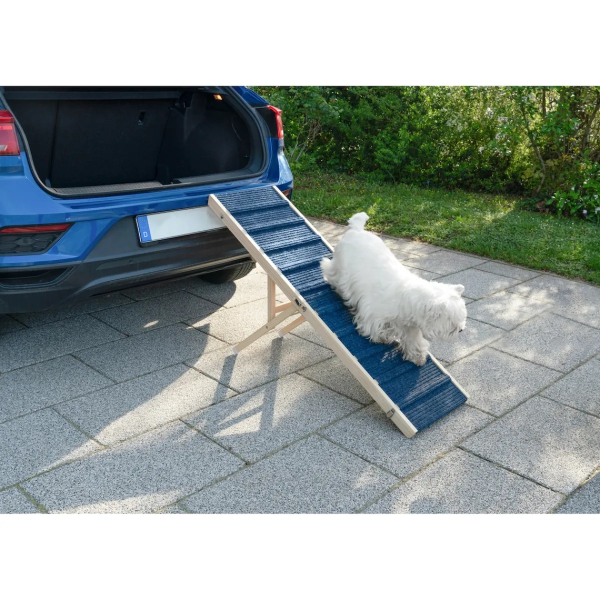 Die Lösung für ältere Hunde, Hunde mit Einschränkungen oder einfach nur für diejenigen, die gerne stilvoll reisen! Mit unserer aufklappbaren Hundetreppe ist Schluss mit mühsamem Heben oder riskanten Sprüngen! Auf den mit Filz beschichteten Stufen gelangt Ihr Liebling mühelos, sicher und gelenkschonend ins Auto oder an andere höhergelegene Plätzchen.