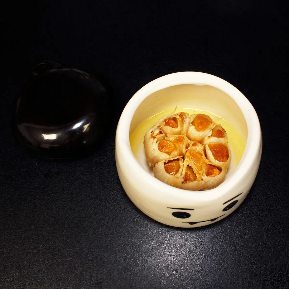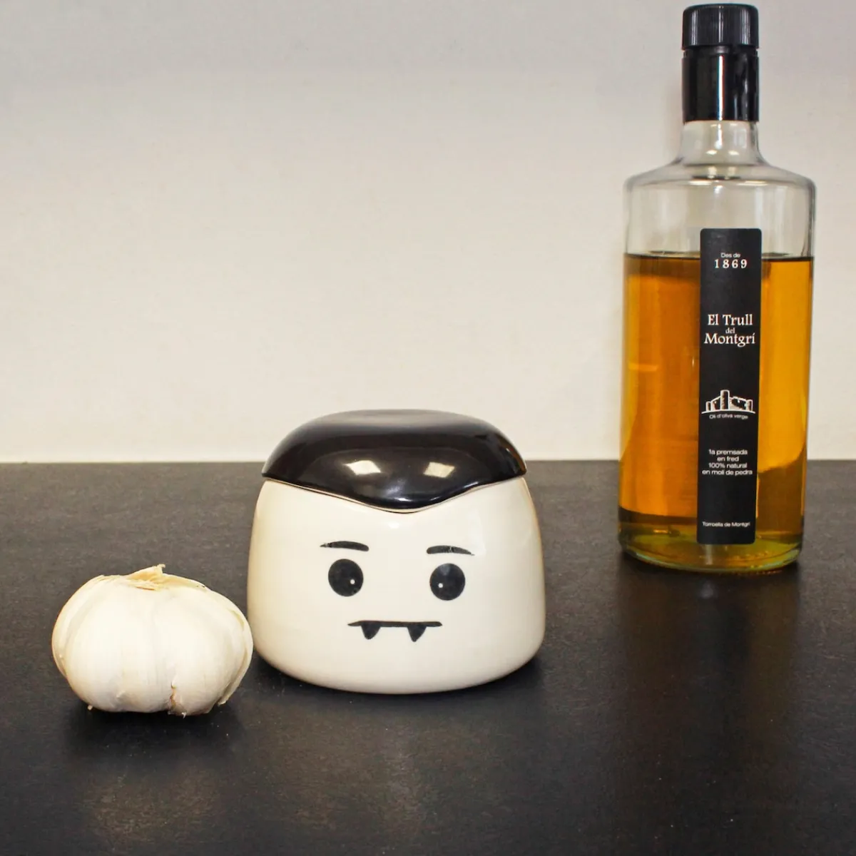 Der Knoblauch-Röster im witzigen Vampir-Design ist ein praktisches Highlight für Ihre Küche. Nutzen Sie ihn zur Aufbewahrung von Knoblauch oder stellen Sie ihn samt Inhalt in den Ofen, um perfekten, aromatischen Knoblauch zu rösten. Einfach zu handhaben und vielseitig einsetzbar – ein Muss für alle Knoblauchfans! Dieses stylische Küchenaccessoire sorgt für Spaß und Funktionalität.