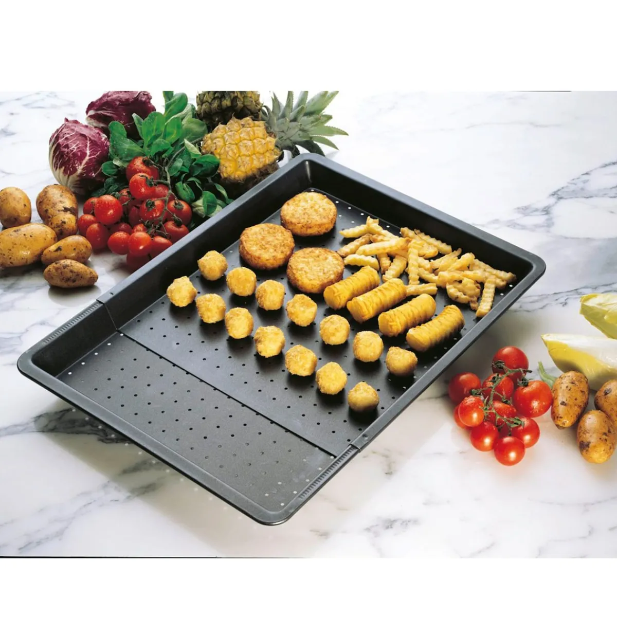 Das innovative Backblech garantiert, dass Ihnen Pizza, Ofengemüse und allerlei Gebäck perfekt gelingen. Dank dem durchgehend perforierten Boden kann die heiße Luft besonders gut zirkulieren und sorgt für gleichmäßig knusprige Backergebnisse. Variabel ausziehbar und durch Feststellfunktion leicht zu fixieren. Mit Teflon-Antihaftbeschichtung.