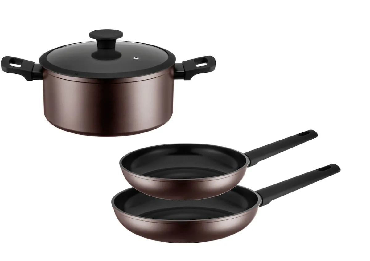 Egal, ob Braten, Schmoren oder Sautieren – mit diesem Set gelingen perfekte Kochergebnisse bei maximalem Komfort. Das elegante Design in Bronze bringt zudem eine stilvolle Note in Ihre Küche.