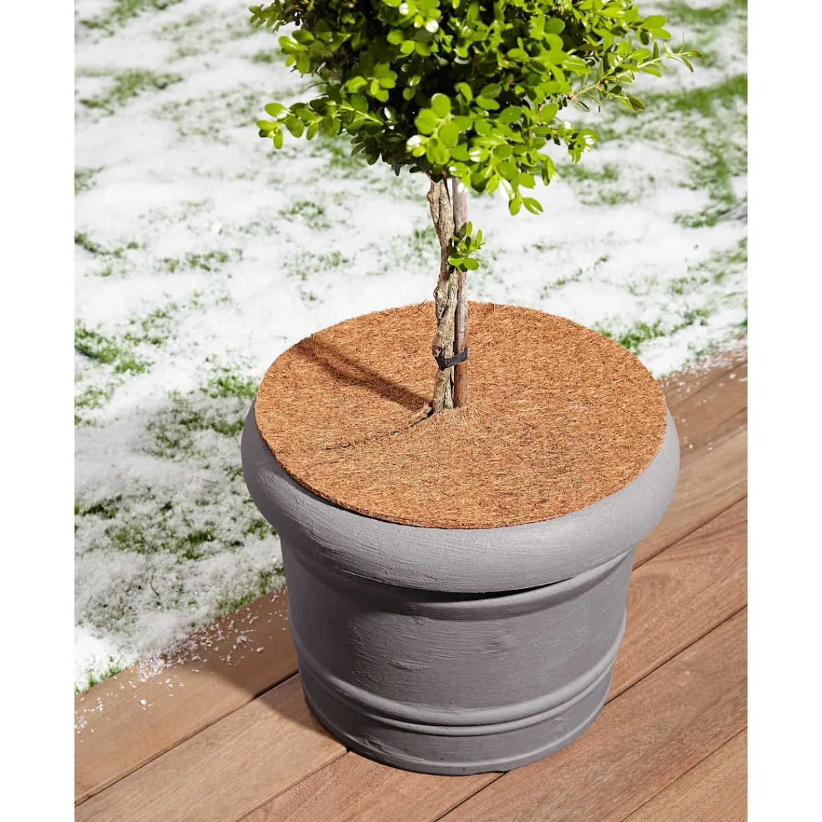 Mit der witterungsbeständigen Abdeckscheibe für Topf- und Kübelpflanzen sind Sie auf der sicheren Seite. Sie hält Frost von oben fern, schützt vor Austrocknung und kann zugleich das Wachstum von Unkraut vermindern.