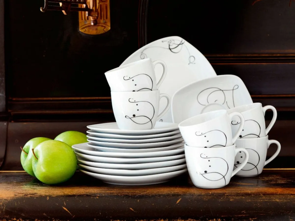 Das 30-teilige Kombiservice »Chanson« von Domestic bereichert das Tischambiente mit seiner außergewöhnlichen Formgebung und einem zeitlos schönen Dekor. Sehr modern und dennoch unaufdringlich elegant macht es aus jedem Esstisch eine stilvoll gedeckte Tafel und lässt sich mit unterschiedlicher Tischwäsche und entsprechenden Dekorationen immer wieder neu inszenieren. Jedes Teil ist aus schönem und dennoch robustem Porzellan gefertigt und unkompliziert sowohl spülmaschinen- als auch mikrowellengeeignet. Dank solider Qualität, sorgfältiger Verarbeitung und edler Optik ist das zeitlose Domestic Kombiservice »Chanson« eine repräsentative Wahl und für den täglichen Gebrauch ebenso geeignet wie für den festlichen Anlass.
