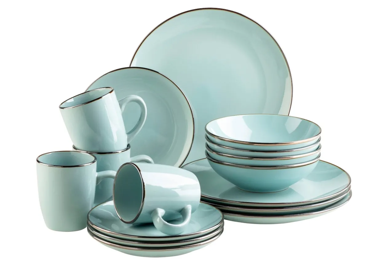 Die Kollektion METALLIC RIM der österreichischen Traditionsmarke MÄSER kombiniert auf erfrischende Weise modernes Design in Material, Form- und Farbgebung mit festlicher Eleganz. Trotz seiner messingfarben schimernden Umrandung ist dieses Geschirrset spülmaschinen- und mikrowellengeeignet, und damit äußerst pflegeleicht. So verzaubert die Serie METALLIC RIM Ihre Gäste nicht nur zu besonderen Anlässen, sondern wertet Ihren Esstisch auch im Alltag auf. Ein besonderes Highlight ist die großzügige Mehrzweckschale, die Müslischale und Suppenteller im Zeitgeist des Bowl-Trends vereint. Dieses Service wird in einer speziell für dieses Set entwickelten, vielfach getesteten Transportverpackung aus umweltfreundlicher Wellpappe versendet. Zur besseren objektiven Vergleichbarkeit gehen unsere Füllmengenangaben von einer randvollen Befüllung aus. Bitte beachten Sie: Die Serie METALLIC RIM wird händisch glasiert, wodurch leichte Unebenheiten, kleine Einschlüsse und minimale Farbabweichungen auftreten können.