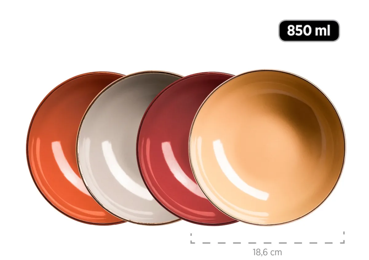 Die Kollektion METALLIC RIM der österreichischen Traditionsmarke MÄSER kombiniert auf erfrischende Weise modernes Design in Material, Form- und Farbgebung mit festlicher Eleganz. Trotz seiner messingfarben schimernden Umrandung ist dieses Geschirrset spülmaschinen- und mikrowellengeeignet, und damit äußerst pflegeleicht. So verzaubert die Serie METALLIC RIM Ihre Gäste nicht nur zu besonderen Anlässen, sondern wertet Ihren Esstisch auch im Alltag auf. Ein besonderes Highlight ist die großzügige Mehrzweckschale, die Müslischale und Suppenteller im Zeitgeist des Bowl-Trends vereint. Dieses Service wird in einer speziell für dieses Set entwickelten, vielfach getesteten Transportverpackung aus umweltfreundlicher Wellpappe versendet. Zur besseren objektiven Vergleichbarkeit gehen unsere Füllmengenangaben von einer randvollen Befüllung aus. Bitte beachten Sie: Die Serie METALLIC RIM wird händisch glasiert, wodurch leichte Unebenheiten, kleine Einschlüsse und minimale Farbabweichungen auftreten können.