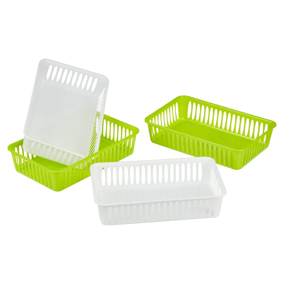 Im Kühlschrank, aber auch in jedem anderen Schrank, leisten diese Körbchen wertvolle Dienste und sorgen wieder für mehr Ordnung und Übersicht. Schluss mit dem Hin- und Herschieben in den Ablagen! Ziehen Sie einfach ein Körbchen heraus und die gewünschten Lebensmittel sind sofort parat. In erfrischenden Farben.
